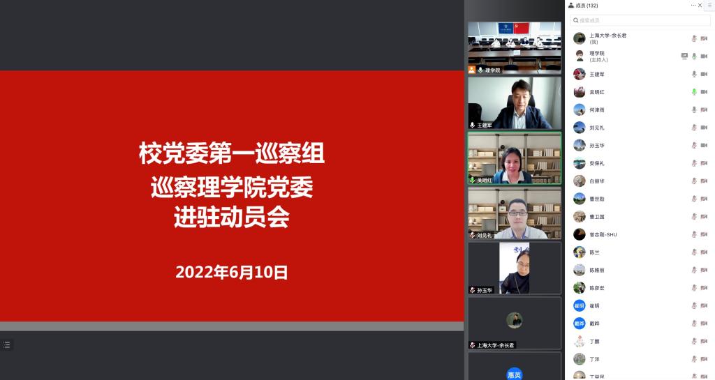 根据校党委第八轮巡察工作整体部署,鉴于目前的疫情防控需要, 2022年6月10日,校党委第一巡察组巡察williamhill体育在线登录党委进驻动员会采用了线上线下相结合的方式召开,线下会议室设在williamhill体育在线登录E408会议室。校党委常委、副校长吴明红,校党委巡察办常务副主任崔海霞,校党委第一巡察组组长王建军、副组长孙玉华,第一巡察组全体组员,巡察办工作人员,williamhill体育在线登录全体党政领导班子成员,学院师生代表共计100余人出席了本次进驻动员会。会议由williamhill体育在线登录常务副院长张登松主持。