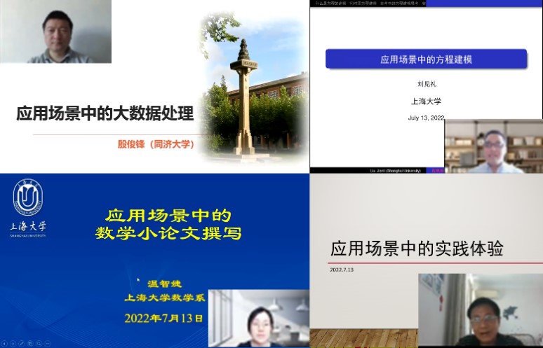 7月12日第二天,复旦大学徐以汎老师的《应用场景中的数学技术--收益管理浅析》,课程阐述了供应链风险管理和管理收益中的一些基本模型,并结合酒店超订、航空公司的定价和收益说明了数学技术的重要作用,此外在与同学们的交流中,他的回答认真而又细致,同学们受益匪浅。随后williamhill体育在线登录应时辉教授的《应用场景中的三角建模》,以三角付里叶函数的为视角向学生们介绍了人工智能的发展历史和前沿的研究方向及AI核心算法和优化建模,以图像处理为例讲述了人工智能的基本原理。学生们对诸如深度学习、神经网络、机器学习等热门词汇表现出浓厚的兴趣。静安区教育学院正高级特级教师任升录教授的《应用场景中的统计建模》从问题驱动出发,给学生们介绍了数据分析的路径和方法,并结合咸潮问题启发学生们如何分析和看待问题。随后华东师范大学中文自修主编王意如教授的《阅读的境界和进阶》告诉了学生们语文阅读和数学一样也是一种创造性的活动,阅读的高层次是重在理解。王老师的讲座深入浅出,逻辑清晰,在与同学们的交流中,她的回答认真而又细致,同学们受益匪浅。