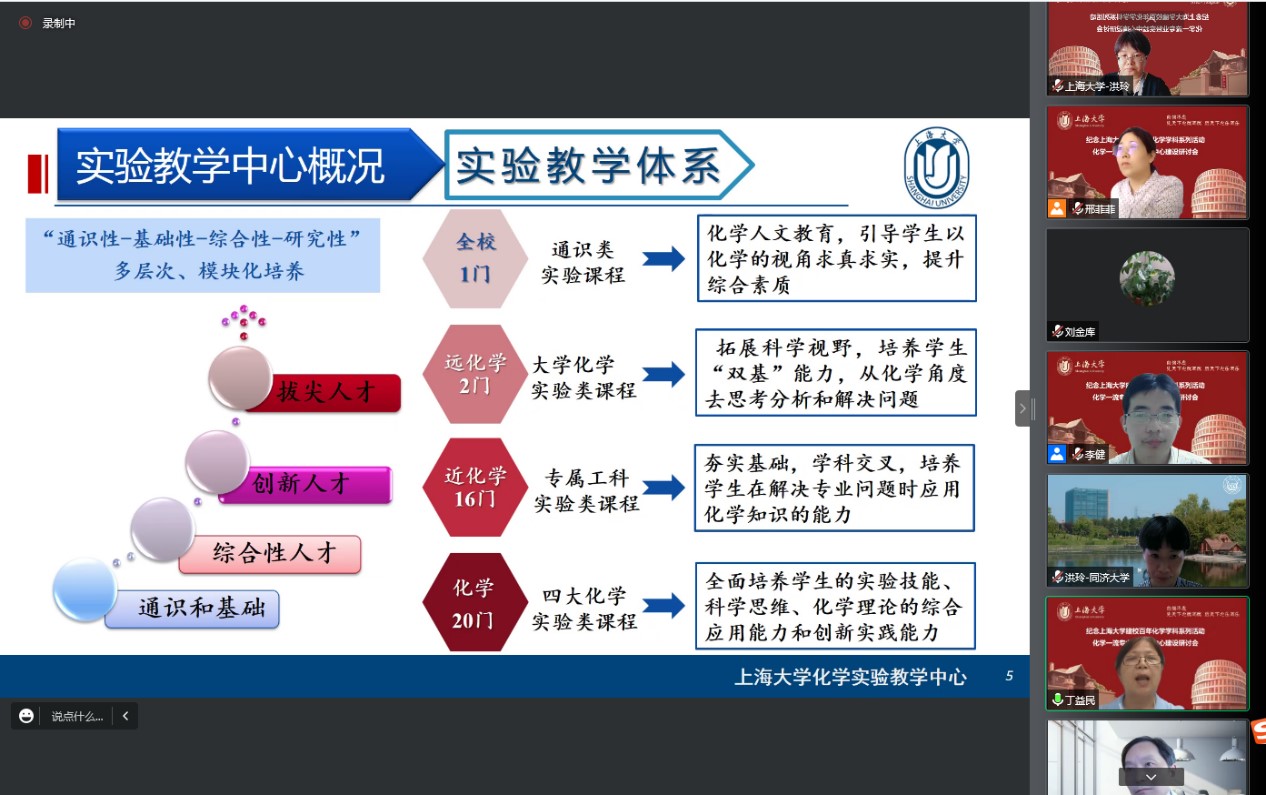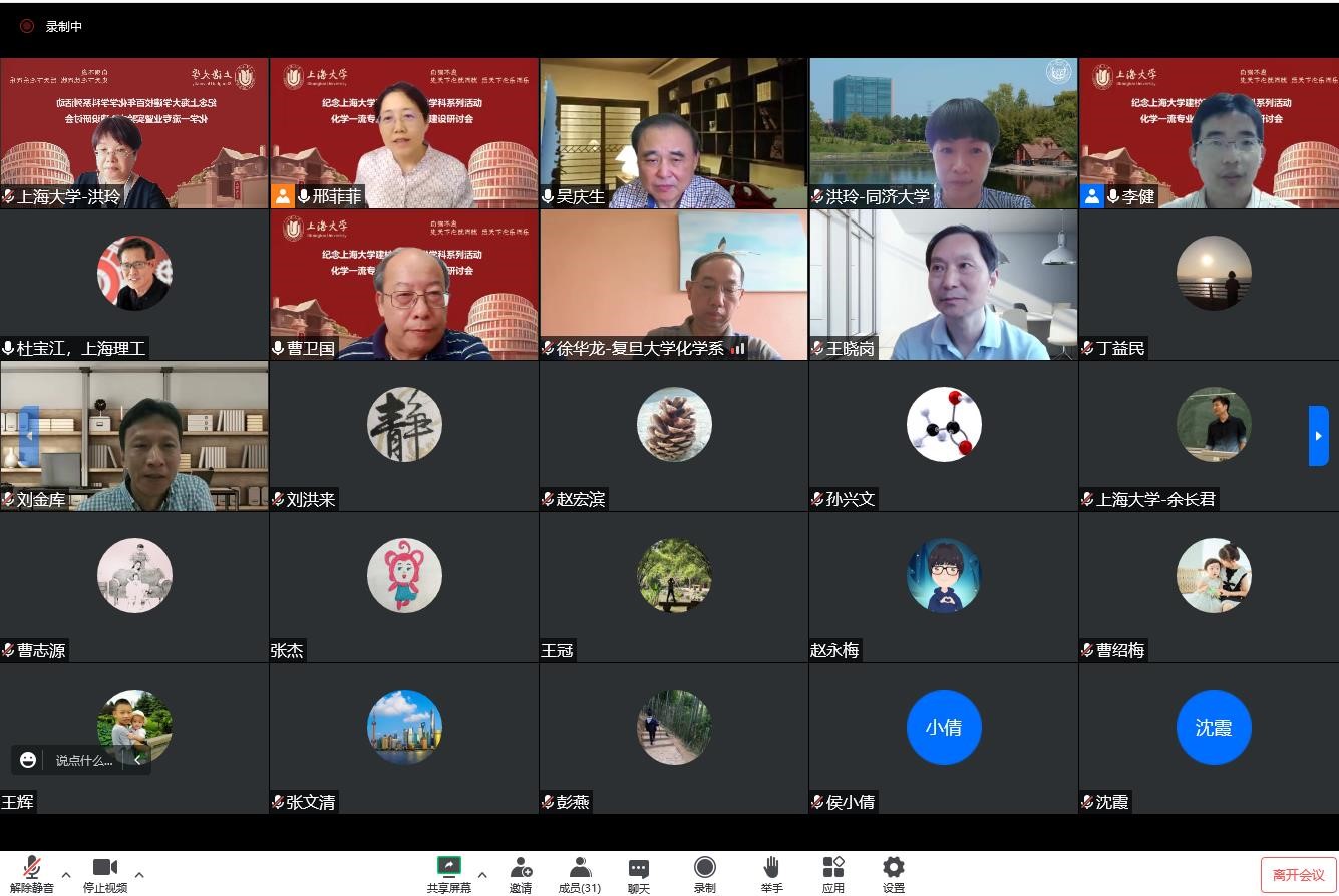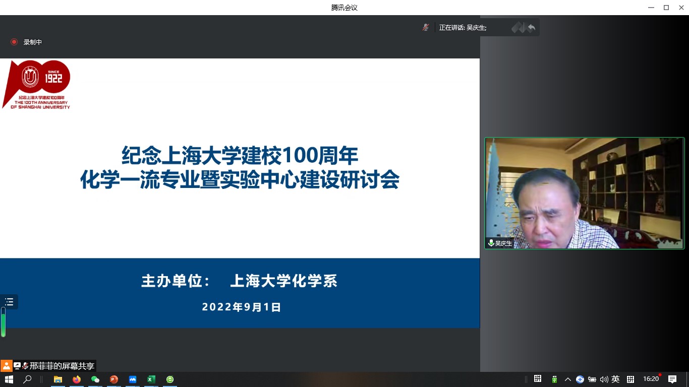 百年上大,红色传承,世纪辉煌,自强不息。9月1日下午,化学学科纪念williamhill体育在线登录建校100周年系列活动之一“化学一流专业暨实验中心建设研讨会”在线上成功举办。研讨会旨在加强williamhill体育在线登录应用化学本科专业建设和实验中心平台建设,加快化学创新人才的培养,推进教育教学相关改革举措。