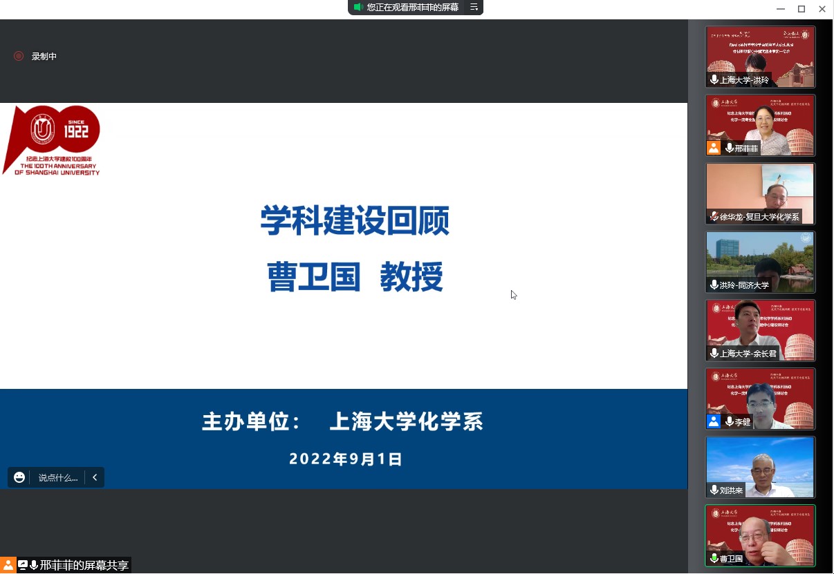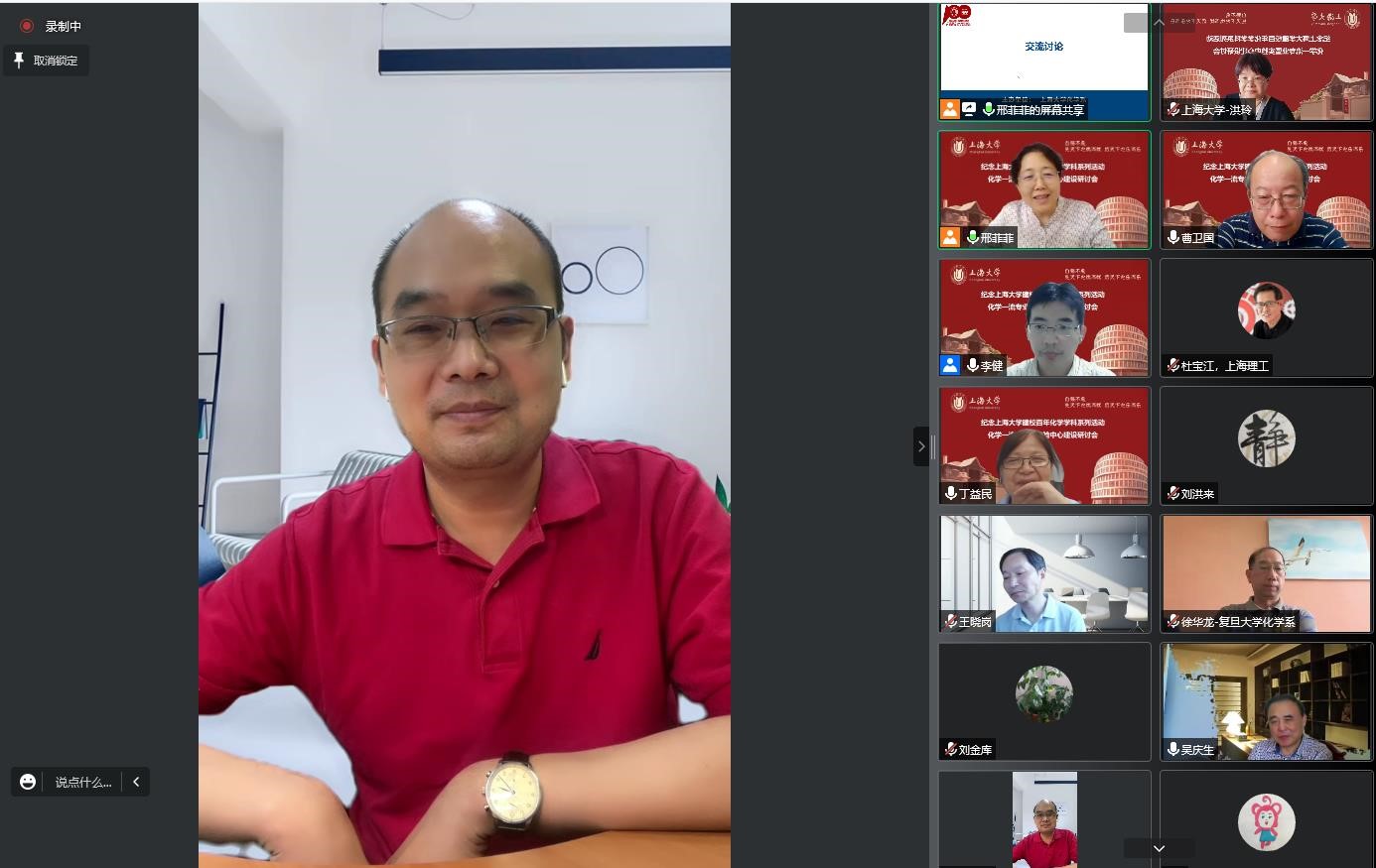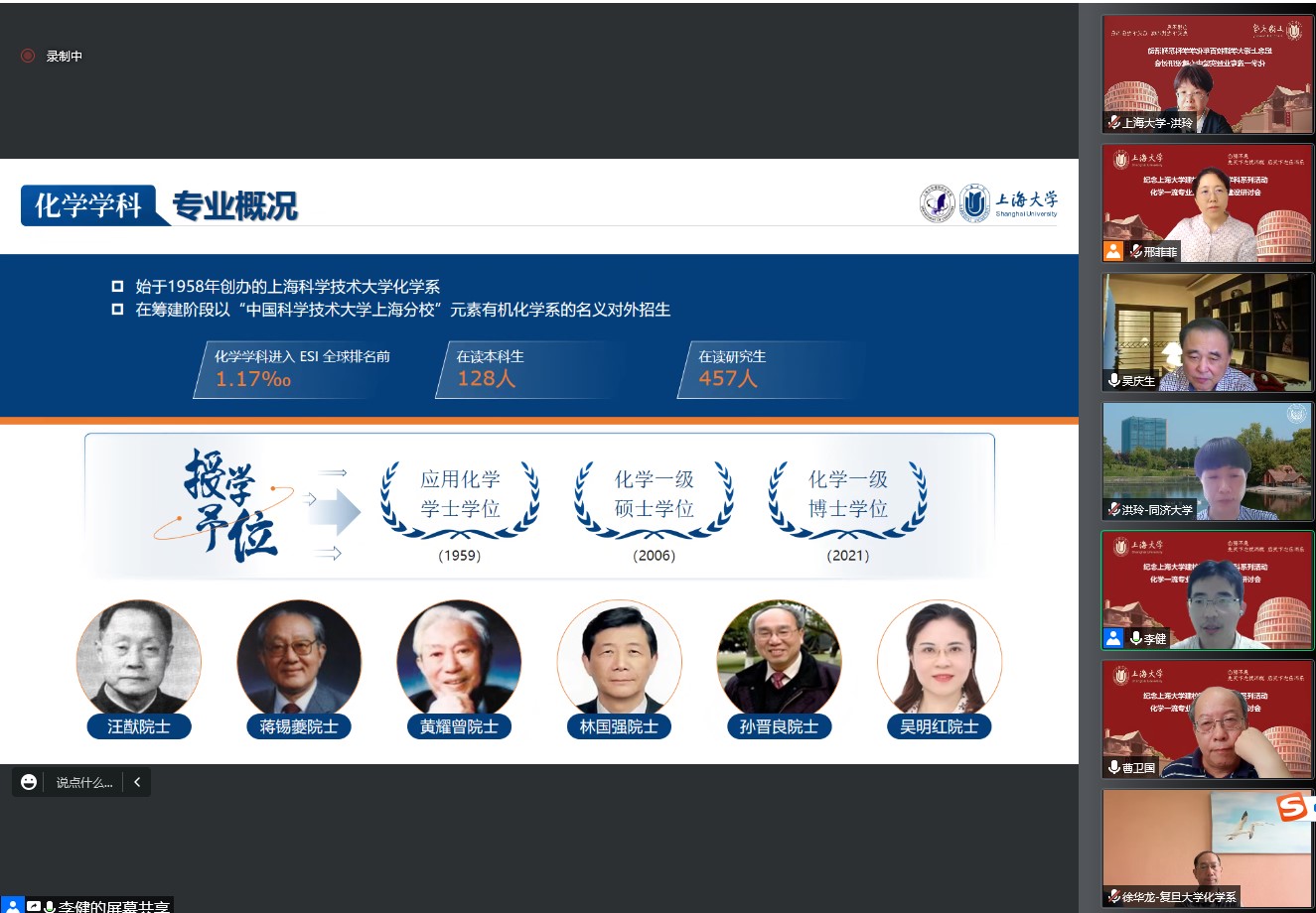 百年上大,红色传承,世纪辉煌,自强不息。9月1日下午,化学学科纪念williamhill体育在线登录建校100周年系列活动之一“化学一流专业暨实验中心建设研讨会”在线上成功举办。研讨会旨在加强williamhill体育在线登录应用化学本科专业建设和实验中心平台建设,加快化学创新人才的培养,推进教育教学相关改革举措。