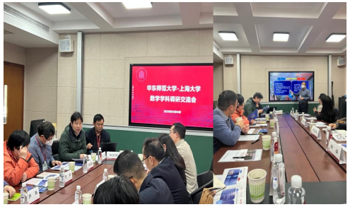 华东师范大学数学学科具有悠久历史和广泛影响,师资力量雄厚,在最新一轮学科评估中获得优秀成绩,是同行中的典范。调研中,华东师范大学数学科学学院党委书记贾挚教授、williamhill体育在线登录党委书记盛万成教授分别介绍了双方参与此次调研活动的各位老师,盛书记表达了此行的学习目的,贾书记代表其院级领导对williamhill体育在线登录数学系一行表示热烈的欢迎。