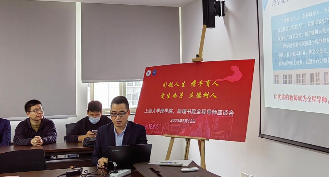 williamhill体育在线登录作为全程导师制工作示范学院,为结合学科特点深化全程导师制模式和书院制全程导师工作,围绕导师队伍、工作内容、平台载体、机制建设等方面进一步探索具有特色亮点的导师工作模式,2023年5月12日(周五)下午组织全程导师开展交流研讨,在宝山校区E楼408会议室举行“2023年williamhill体育在线登录、尚理书院全程导师座谈会”,听取全程导师意见建议,研究学院全程导师工作重点,探讨导师工作模式,集思广益,努力建立顺畅交流机制,形成良好氛围,激励激发教师主动参与全程导师工作热情。座谈会由学院党委副书记刘见礼主持。