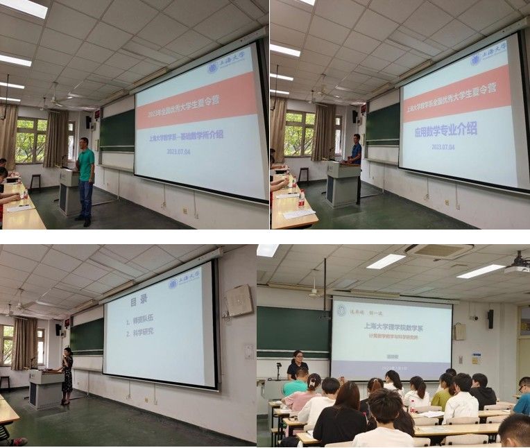 基础数学所所长孙建才教授,应用数学所副所长胡召平副教授,运筹与优化所副所长王文环副教授,计算数学所副所长潘晓敏博士分别向同学们介绍了我系四个研究所的师资发展情况。