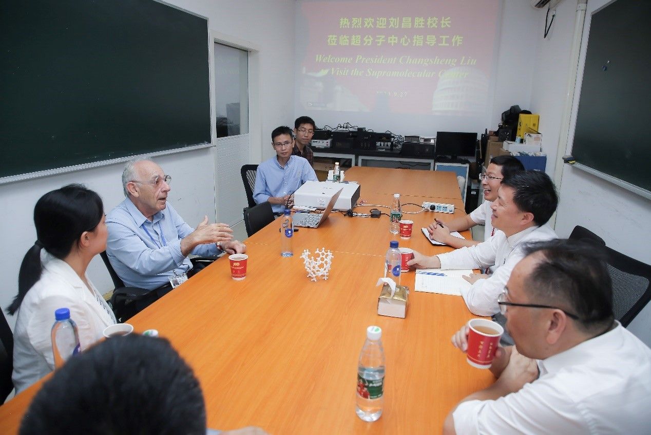 刘校长表示非常感谢Julius Rebek教授在过去几年中对williamhill体育在线登录化学学科的发展和博士点的设立做出的重要贡献,以及其强烈的工作责任感和对科研执着的追求,希望Rebek教授一如既往的支持williamhill体育在线登录化学学科以及人才队伍的发展,并就如何发挥自身优势,加强团队与团队的交流合作,打开跨学科的壁垒,提升合作层次和质量等与Rebek教授进行了深入探讨。刘校长还对超分子中心以及化学学科建设和发展提出了指导性的意见。座谈之后,刘校长在Rebek教授的陪同下参观了超分子中心的实验室。