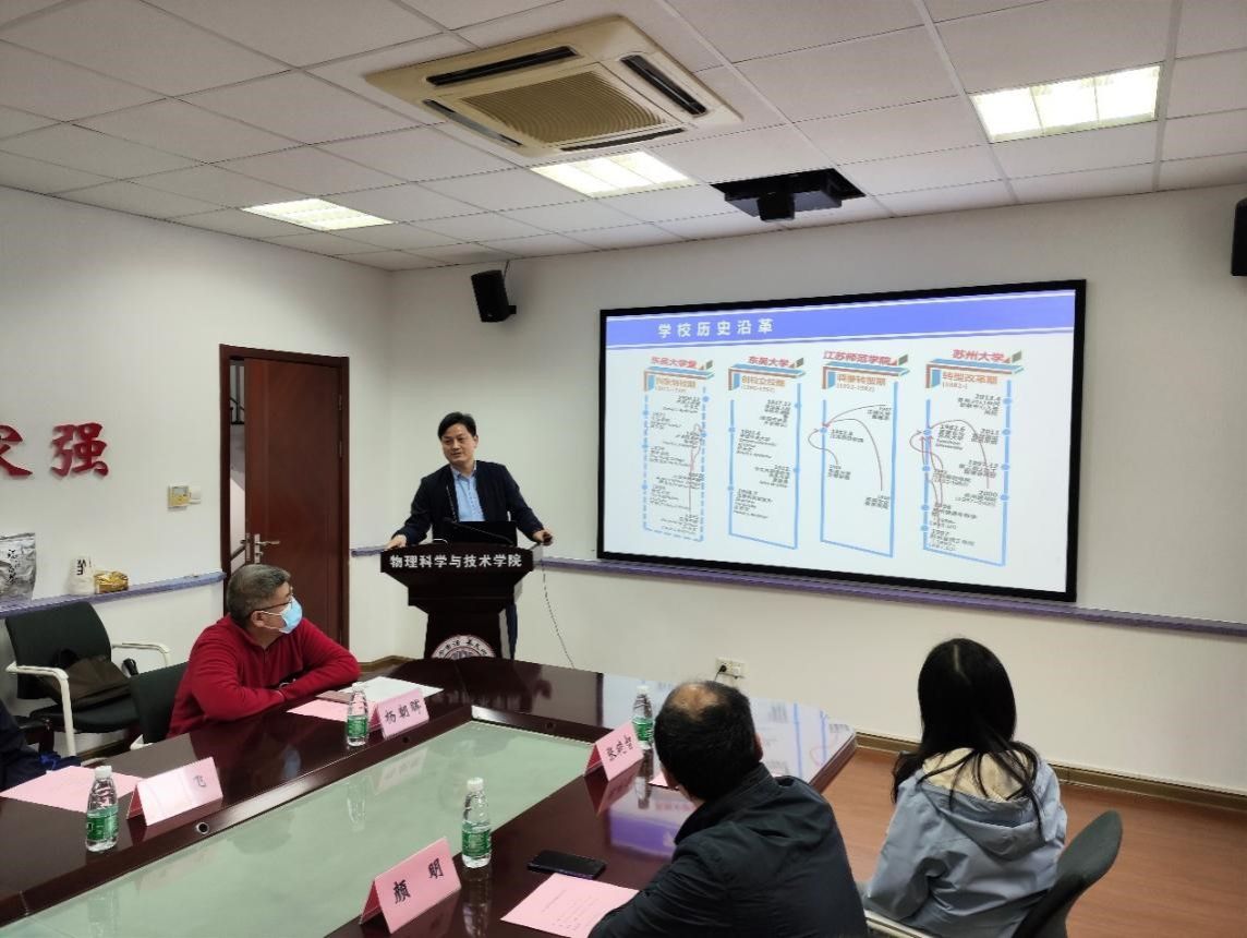 首先,苏州大学物williamhill体育在线登录党委书记杨礼富对williamhill体育在线登录领导及物理系班子来访表示热烈欢迎,对两校长期以来在物理学科发展合作与对话交流表示肯定并提出进一步加强物理学科合作交流,互通有无的期望。副院长赵承良介绍苏州大学物理系发展历史和基本情况。从1914年成立东吴大学物理系至今,苏州大学物williamhill体育在线登录建成了完善的科研机构和师资团队,同时在本科专业建设及研究生教育管理方面厚积薄发,基础研究和成果转化也不断取得突破性进展,形成了具有物理专业特色的人才培养体系。