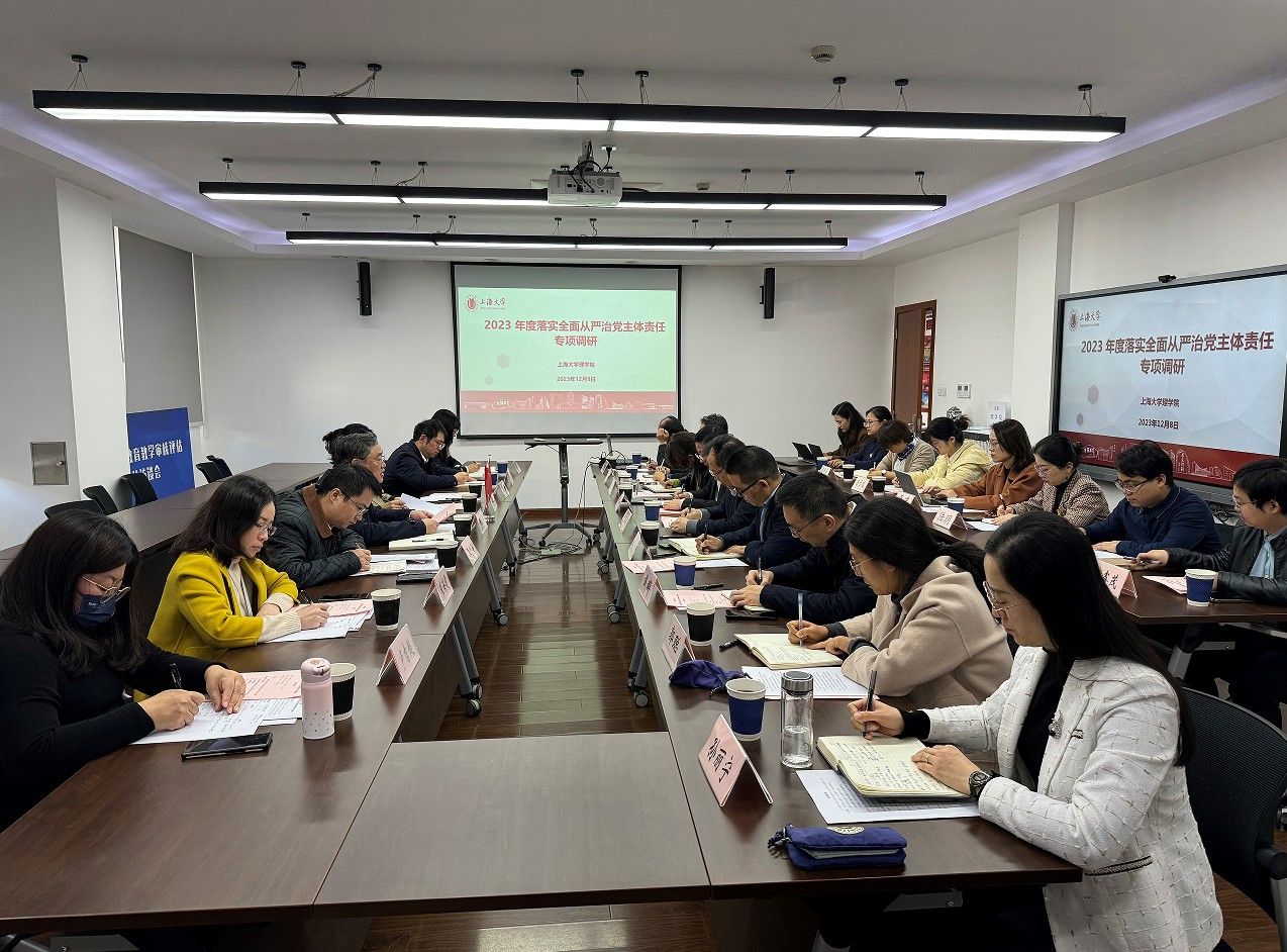 12月8日上午,williamhill体育在线登录党委召开2023年度落实全面从严治党主体责任专项调研会议。校党委书记成旦红、校党委常委、副校长吴明红、党政办公室主任秦凯丰、校纪委副书记滕云、党委巡察办常务副主任崔海霞、党委宣传部副部长、融媒体中心主任吴铭、组织人事部组织处副处长、党校副校长卢吉超、党委统战部副部长谭婷、williamhill体育在线登录党委书记盛万成、williamhill体育在线登录常务副院长张登松以及学院党政班子成员和青年座谈代表等出席了会议。会议由校党委书记成旦红主持。