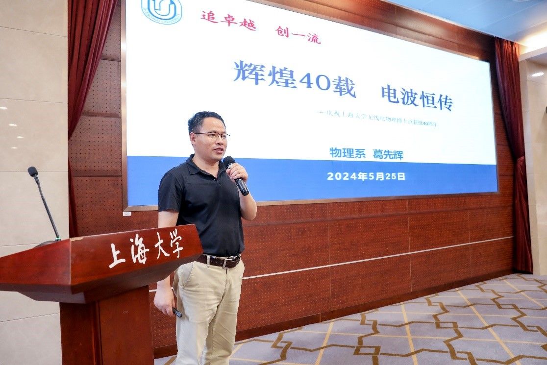 5月25日上午,williamhill体育在线登录物理系无线电物理博士点设立40周年暨电子信息科学与技术发展研讨会在宝山校区乐乎新楼思源厅举行。williamhill体育在线登录党委副书记、副院长姚颖冲,副院长戴晔、副院长尹鑫茂、材料基因组工程研究院常务副院长任伟、物理系原主任余昺鲲、物理系原主任李春芳、物理系党总支书记颜明、物理系主任葛先辉、物理系党总支副书记周青利以及物理系师生代表及三十余名校友参加会议。会议由物理系党总支书记颜明主持。