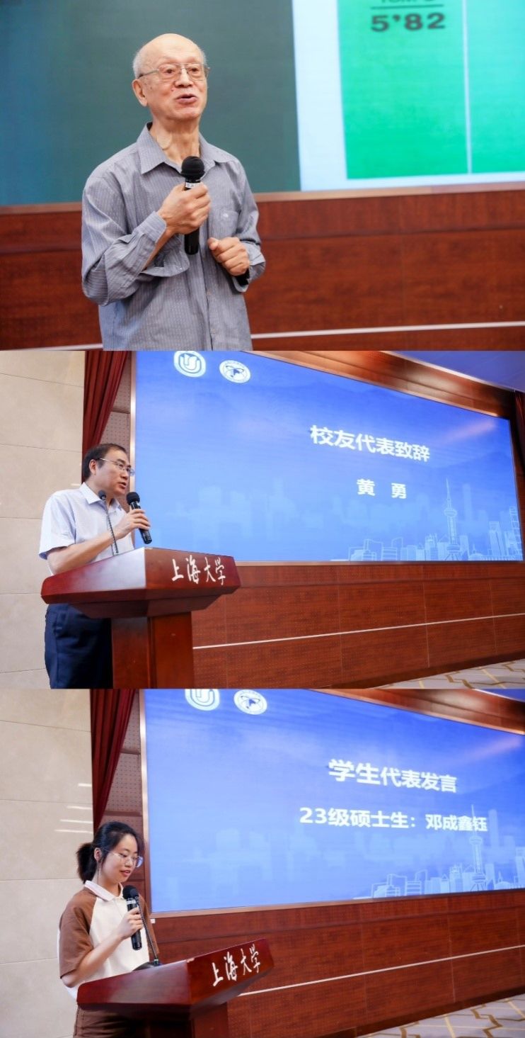 校友代表黄勇先生代表此次参加的校友发表了感想,黄勇先生是83级物理系校友。他表示毕业后一直从事物理相关行业的研究,回忆起自己在物理系求学的日子,正是在学校学习时培养的进取精神,让自己获得了今天的成绩,他再次表达了对母校和恩师的感激之情。