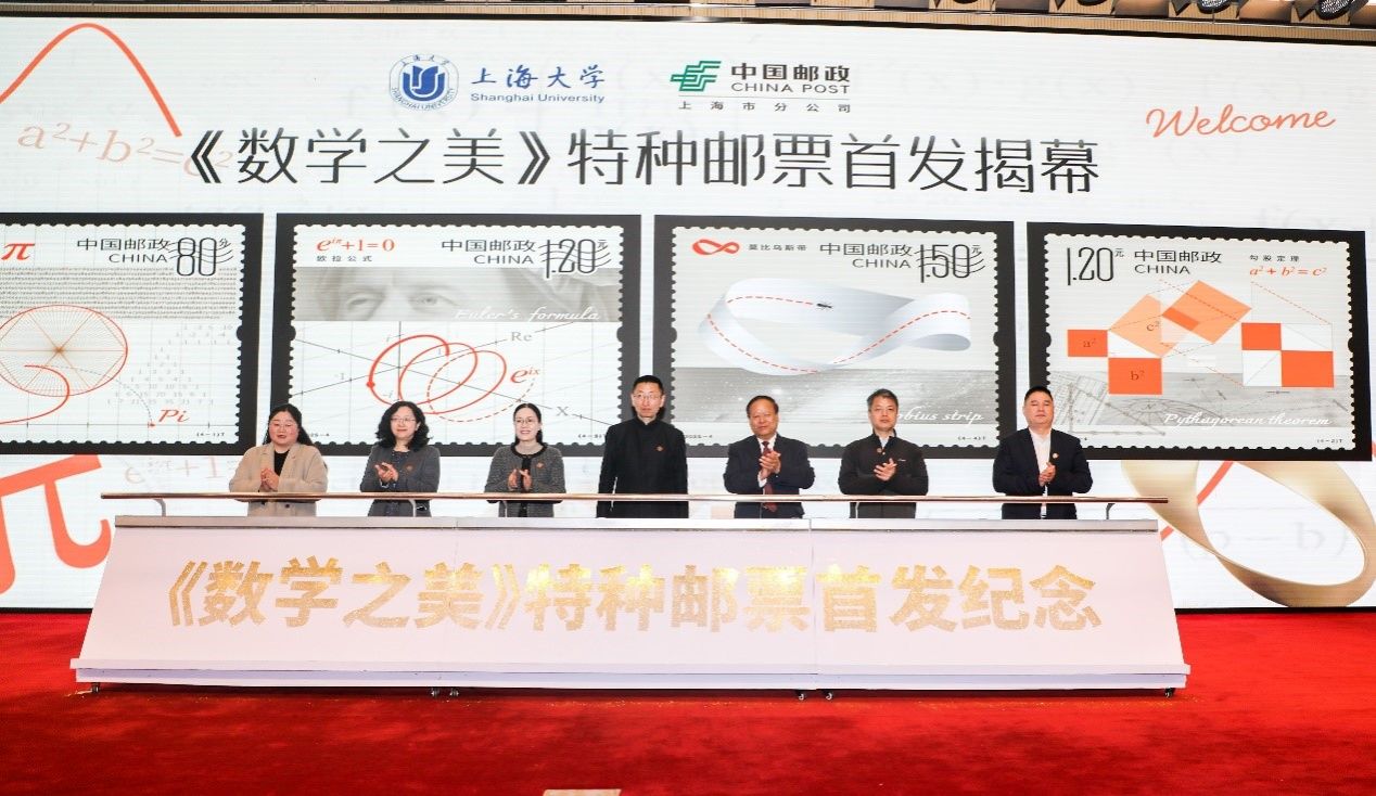 领导和嘉宾共同为《数学之美》特种邮票揭幕。