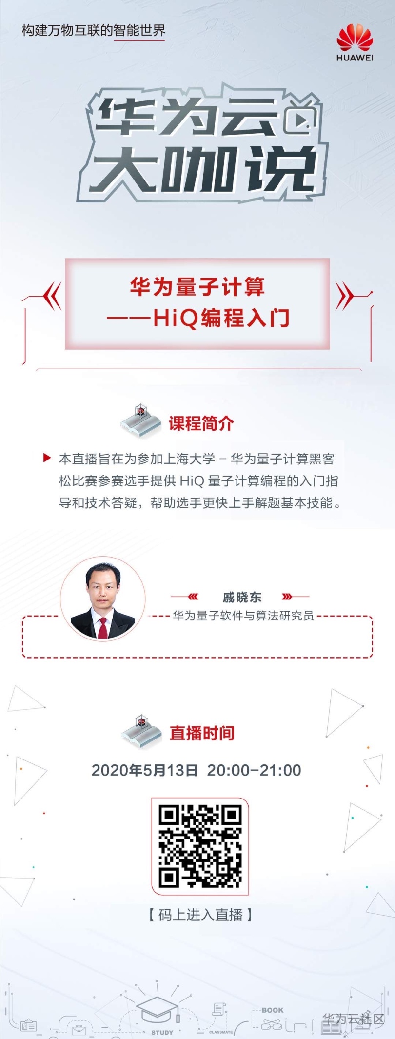 2020年5月13日晚8:00在华为云直播平台和williamhill体育在线登录Bilibili平台同步直播了华为科技公司量子计算和软件研究院戚晓东博士的HiQ量子计算培训课程。williamhill体育在线登录-华为量子计算黑客松大赛参与者及williamhill体育在线登录师生800余人通过Bilibili平台参与此次活动。