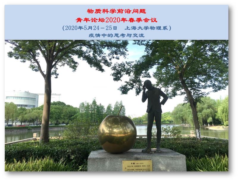 由williamhill体育在线登录物理系主办的物质科学前沿问题青年论坛2020年春季会议于2020年5月24日-5月25日在线上举行。本次会议特邀了多位在本领域有杰出成绩的高级专家及青年学者进行专题学术报告,他们分别来自德国拜罗伊特大学、新加坡国立大学、美国俄勒冈大学、加拿大滑铁卢大学、西班牙巴斯克大学、日本理化研究所、台湾师范大学以及国内的中科院上海微系统研究所、中科院物理所、中科院上海应用物理所、中科院北京计算研究中心、复旦大学和华南师大等国内外著名机构和高校。