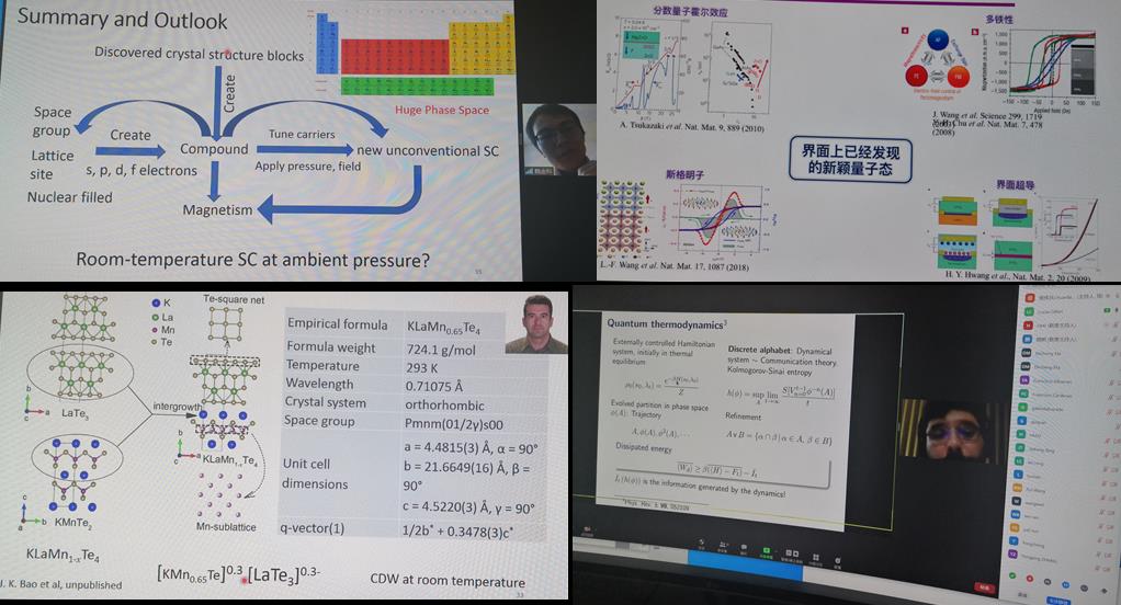 本次疫情期间,williamhill体育在线登录物理系教师们积极争做晨曦中的赶路人,疫情中的思考者。在今年4月初刘昌胜校长、吴明红副校长等学校主要领导对本学科进行专题调研后,全系积极贯彻校领导要做一流工作、聚焦重点方向的指导思想,对内加强学科方向凝聚,对外积极联络海内外从事量子与超导等物质科学领域研究的顶级人才和优秀青年学者,通过互联网进行不间断的交流和沟通,探索在当前特殊时期高效的学术研讨和人才蓄水池新模式。