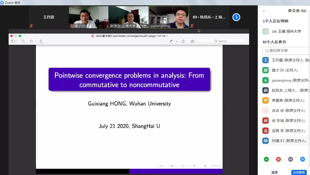 夏令营于21日下午圆满落幕。本次线上夏令营为促进了高校数学本科生的交流与互动,拓展了本科生学术视野,强化了本科生创新意识,提高了本科生科研水平和创新能力,增进了众多国内高校优秀大学生对williamhill体育在线登录数学系的了解。