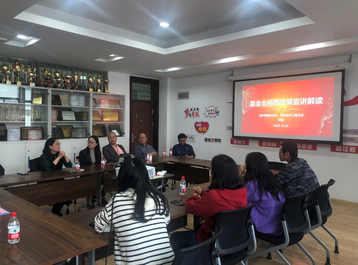 10月22日下午3点,williamhill体育在线登录在E512会议室顺利召开了基金会捐赠政策宣讲解读会。williamhill体育在线登录对外联络处处长、教育发展基金会秘书长、校友会办公室主任许瑞应邀作为主讲嘉宾,对外联络处副处长、校友会办公室副主任彭明霞,williamhill体育在线登录党委副书记姚颖冲,williamhill体育在线登录副院长张登松、徐甲强,对外联络处基金工作主管姜芬芬,化学系党总支书记陈雅丽,化学系系主任曹卫国,各系青年教师代表等参加了本次解读会。本次会议由williamhill体育在线登录党委副书记姚颖冲主持。