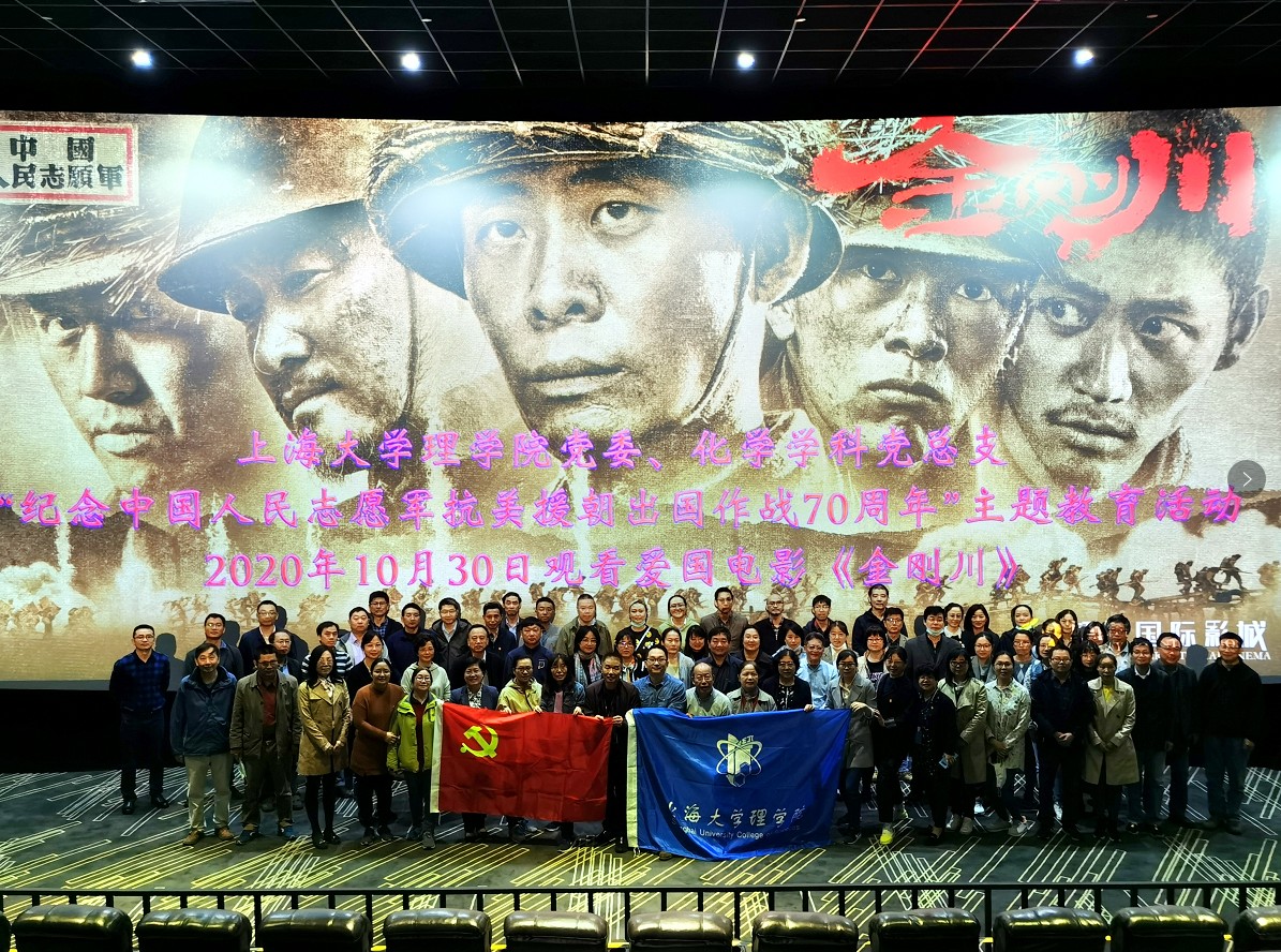 为进一步弘扬伟大抗美援朝精神,延续红色基因,牢记初心使命,10月30日,williamhill体育在线登录党委、化学学科党总支组织88名党员、积极分子、党外人士、骨干教师、青年老师等观看了抗美援朝战争影片《金刚川》。williamhill体育在线登录党委副书记陈然,化学学科党总支书记陈雅丽,化学系主任曹卫国及系党政领导班子,院行政支部和化学学科党支部书记等参加了活动。