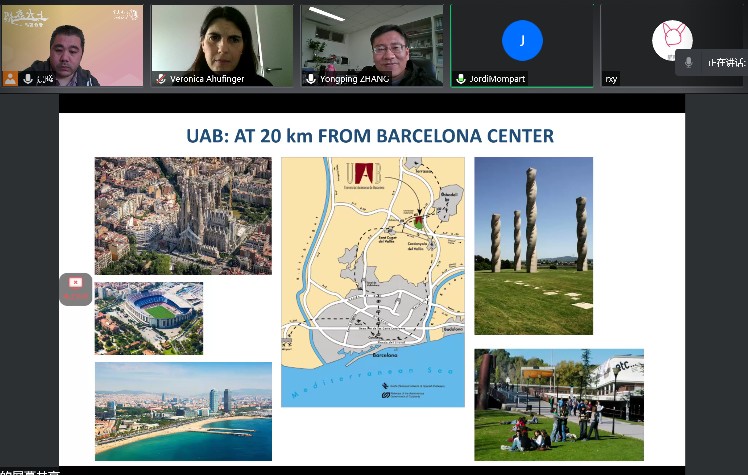 会议第二场与西班牙巴塞罗那自治大学进行了在线交流。在简单介绍之后,西班牙巴塞罗那自治大学物理博士点负责人Jordi Mompart教授介绍了巴塞罗那自治大学地理位置、办学宗旨、国际师生比例、研究中心、教学优势等基本情况,重点介绍了物理系的课程设置和专业内容;巴塞罗那自治大学williamhill体育在线登录副院长Veronica Ahufinger教授也详细介绍了QUANTUM ATOM OPTICS GROUP的研究方向与最新研究成果,希望与上大williamhill体育在线登录开展深度合作与交流,借此项目邀请更多的师生到巴塞罗那自治大学进行访问学习。