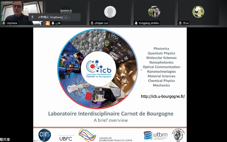 会议分为两场,第一场与法国勃艮第大学LICB实验室连线交流。首先由陈玺教授简要介绍创新型人才国际合作培养项目的合作基础、资助规模、学生培养案例、派出机制及申请流程,致力探索国际化的师生访学新模式,开拓学生联合培养及教师交流访问的新途径,为共建教育部联合实验室做准备。随后,参加了法国PNN硕士项目的刘凯鹏博士分享了其在法国勃艮第大学学习和生活的经验与体会,无论从专业设置、师资配备还是课题研究支持,勃艮第大学都是非常推荐的访学选择,并鼓励有意向的同学争取机会走出去。之后,法国勃艮第大学LICB实验室副主任、研究生院副院长Stephane Guerin教授重点介绍了LICB实验室的组织架构及相关课程设置和国际合作资源等,在基于前期良好合作的基础上,真诚欢迎上大学子申报此次创新型人才培养项目,开拓国际视野,提升自身科研能力,夯实专业外语基础。同时,勃艮第大学数学系硕士点负责人Nikolai Kitanine就数学系基本概况,科研情况及专业课程设置做了详细介绍。