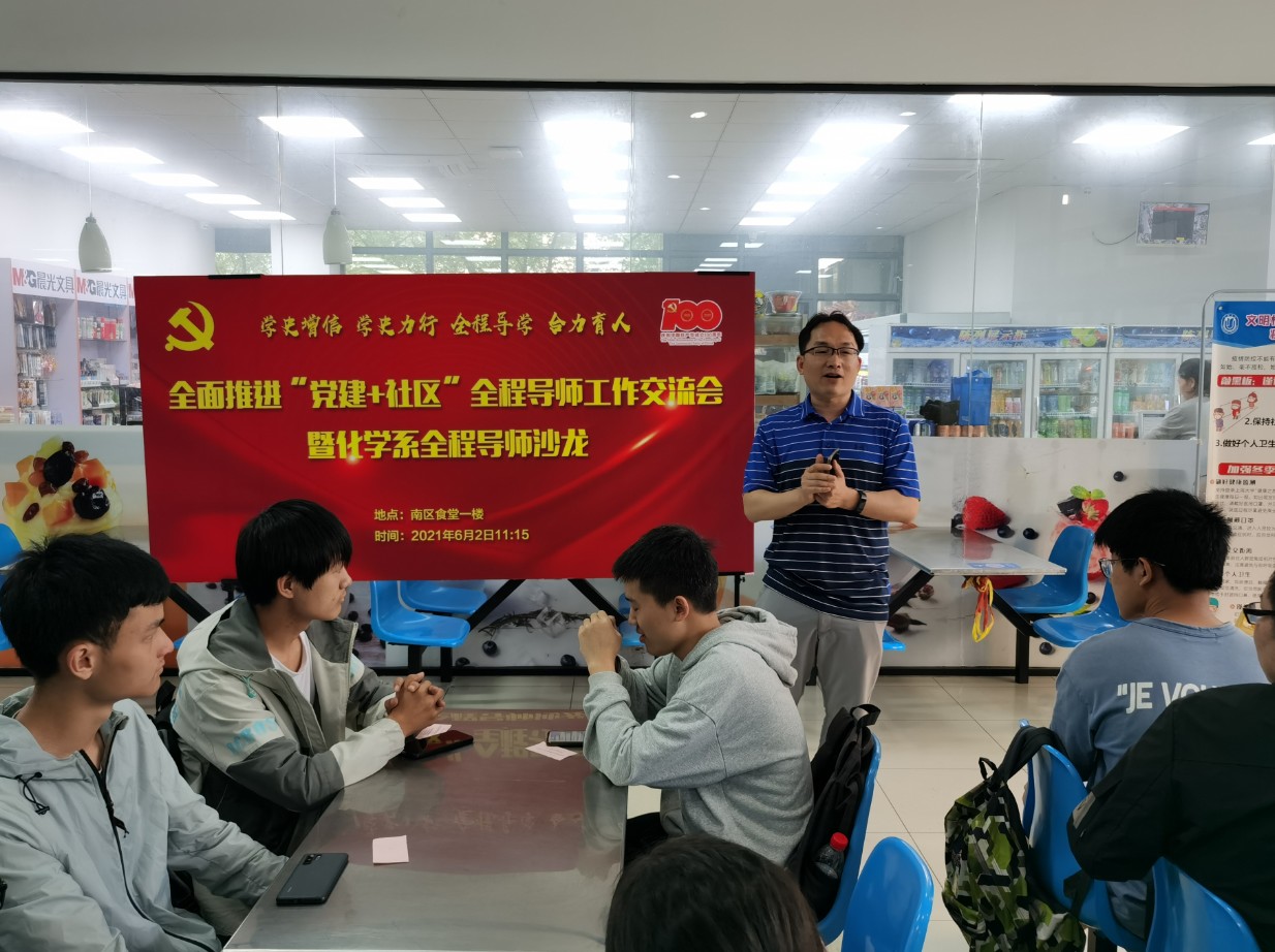 6月2日,为推动落实williamhill体育在线登录党委关于党史学习教育“我为师生办实事”实践活动的工作要求,williamhill体育在线登录化学系在南区食堂一楼承办了全面推进“党建+社区”全程导师工作交流会暨化学系全程导师沙龙。williamhill体育在线登录党委书记盛万成,院党委副书记陈然、姚颖冲,院工会主席、纪委委员张敏,化学系主任曹卫国、副主任邢菲菲、李健、系党总支副书记胡研、系工会主席宋力平及全程导师、党支部书记、部分学生参加了沙龙。williamhill体育在线登录化学学科党总支书记陈雅丽主持活动。