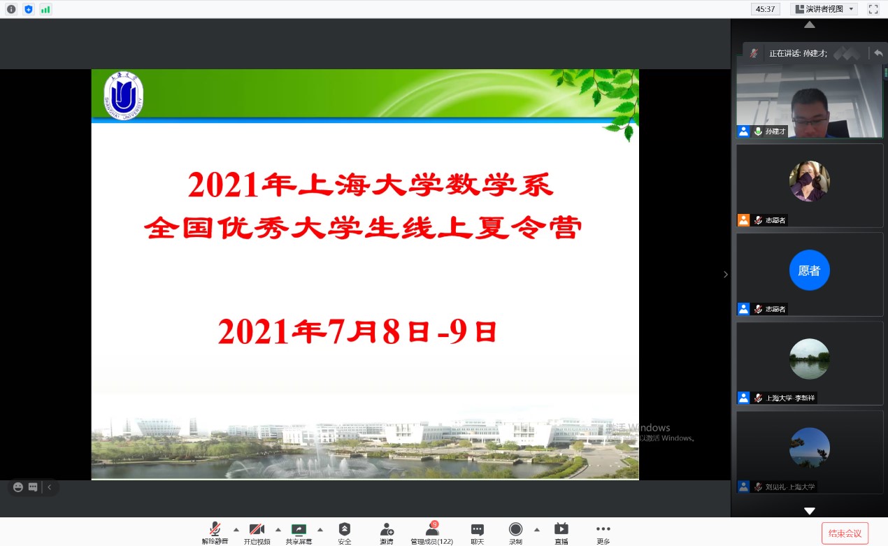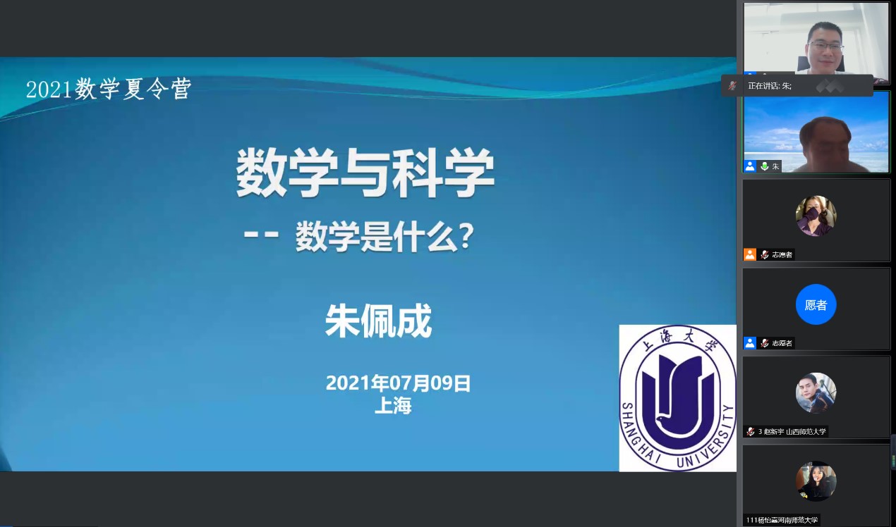 2021年7月8-9日,由williamhill体育在线登录数学系主办的“2021年williamhill体育在线登录数学系全国优秀大学生线上夏令营”隆重开营。参加本次夏令营的有来自兰州大学、郑州大学、新疆大学、石河子大学、海南大学、南昌大学、中国石油大学(华东)等80余所国内高校的优秀大学生,共计150余名师生参加夏令营。