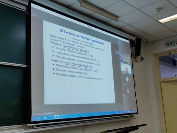 9月7日下午,williamhill体育在线登录数学系首堂本科生《运筹与优化》国际化教学课顺利开展,整个秋季学期课程均由Yurii Nesterov教授和数学系余长君副教授联合进行“线上+线下”授课,百余名学生线下聆听。