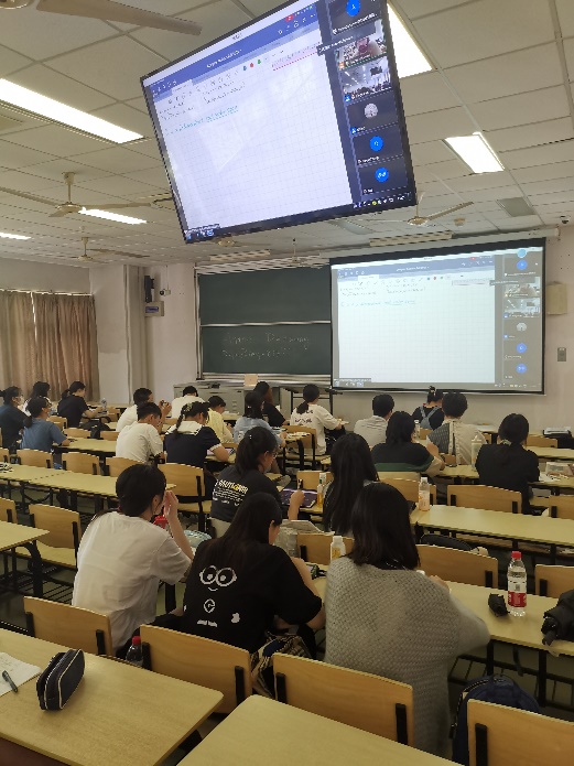 9月7日上午10点,williamhill体育在线登录数学系本科生《复变函数论》国际化教学课在DJ304顺利开展,课程由Anton Dzhamay教授和张大军教授联合进行“线上+线下”讲座,60名学生线下聆听。