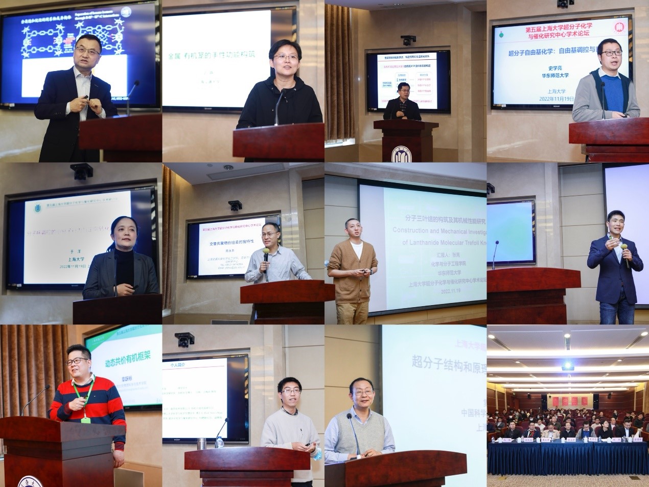 复旦大学金国新教授、上海交通大学刘燕教授、华东理工大学马骧教授、华东师范大学史学亮教授、williamhill体育在线登录于洋教授、上海交通大学周永丰教授、华东师范大学张亮研究员、上海交通大学颜徐州研究员、上海科技大学章跃标研究员、williamhill体育在线登录雷川虎副教授、上海有机化学研究所和复旦大学黎占亭教授分享了超分子领域中的有机金属框架、金属-有机笼的手性功能构筑、组装诱导发光、超分子自由基化学、分子杯调控的小分子行为与定向转化、交替共聚物自组装的独特性、机械互锁聚合物、动态共价有机框架、功能导向的扩展卟啉化学及超分子结构和原理应用于拮抗药物发现探索等方面的研究工作。会议围绕超分子化学、催化及材料科学等主题从不同层面、不同角度展示了有机超分子相关领域的前沿及发展趋势,激发了参会者的学术热情,促进了有机超分子化学领域的交流与合作。