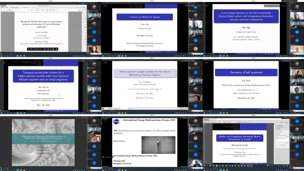 11月20日,williamhill体育在线登录数学学科2022年国际青年学者论坛在宝山校区F楼309举行。本次会议由williamhill体育在线登录主办,williamhill体育在线登录数学系承办。本次论坛收到来自美国、德国、巴基斯坦、印度、中国等国内外著名高校或科研机构的众多青年学者的申请,择优遴选出9位青年学者参加线上论坛。