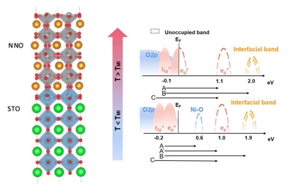 在这项工作中,尹鑫茂教授团队通过脉冲激光沉积技术(PLD)在不同单晶衬底上制备了不同厚度的镍氧化物NdNiO3(NNO)薄膜。通过整合多种先进、独特的光谱学手段,包括:同步辐射X射线吸收光谱(XAS),椭圆偏振光谱和同步辐射X射线衍射(XRD)等光谱技术,并结合第一性原理计算,在SrTiO3(STO)衬底上的镍氧化物的薄膜中发现了一个新的未占据能带。并揭示了在NNO/STO界面处,STO衬底的Ti 3d轨道和NNO薄膜的O 2p轨道之间存在很强的轨道杂化。而这复杂的界面轨道杂化效应正是NNO薄膜发生相变的关键原因。该研究利用独特光谱技术阐明了镍氧化物在金属绝缘相变前后的电子结构变化过程。这一重大发现突出了界面轨道杂化的重要性,并促进了相变工程的发展,为研究复杂氧化物异质结构中的界面效应提供了有价值的方法和见解。