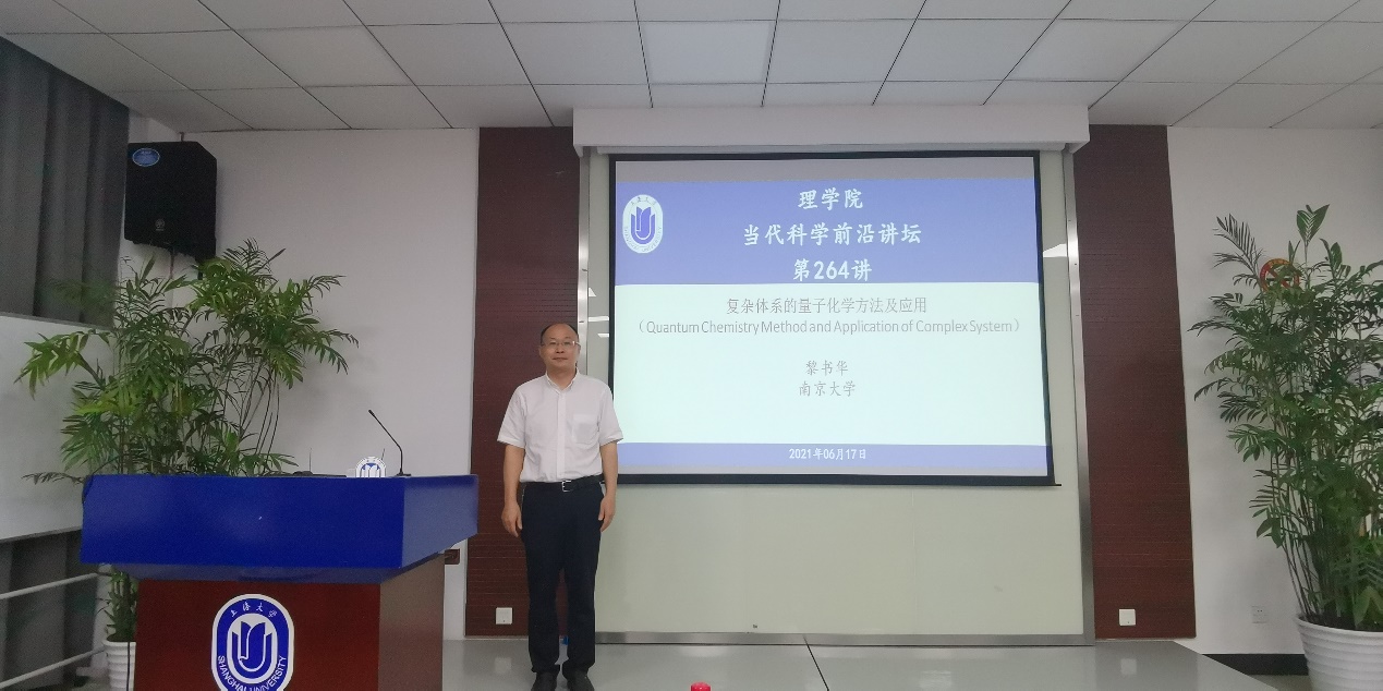 应化学系邀请,6月17日下午,中国化学会理事、国际量子分子科学院院士、世界理论与计算化学家协会理事、中国化学会理论化学专业委员会副主任委员、国家杰出自然基金获得者、教育部长江学者特聘教授、南京大学化学化工学院院长黎书华教授应邀来williamhill体育在线登录学术交流,并做了题为“复杂体系的量子化学方法及应用”的学术报告,该学术报告为williamhill体育在线登录“当代科学前沿讲坛”第264讲。williamhill体育在线登录党委书记盛万成、化学学科党总支书记陈雅丽、系主任曹卫国、系副主任赵宏滨、李健、邢菲菲等80多位师生参加了报告会。化学系陆文聪教授主持报告会。