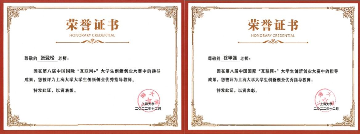 中国国际“互联网+”大学生创新创业大赛创办于2015年,目前已成功举办八届,是全世界规模最大、最具影响力的高水平大赛,具有参赛对象多样、赛道丰富、项目类型多种的三大特点,为高校提供了展现各自学科领域创新成果的机会,是学校体现学科专业水平、人才培养成效的重要舞台。williamhill体育在线登录在第八届国赛中取得1金6铜共七项奖项。williamhill体育在线登录因在第八届大赛中的积极组织和优秀表现,荣获“williamhill体育在线登录优秀组织奖”; “呼吸之检”指导教师张登松教授和徐甲强教授分别获得“williamhill体育在线登录大学生创新创业优秀指导教师”荣誉称号。