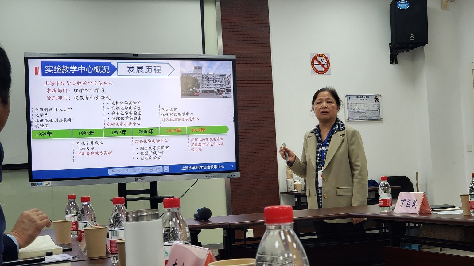 杜晓庆代表学校感谢各位专家前来为化学实验教学中心传经送宝,并介绍了学校本科实验教学平台的学科分布、建设投入等,提出了学校对实验教学示范中心建设的工作要求和期待,也恳请各位专家对化学实验教学中心的发展建设给予更多的指导和建议。