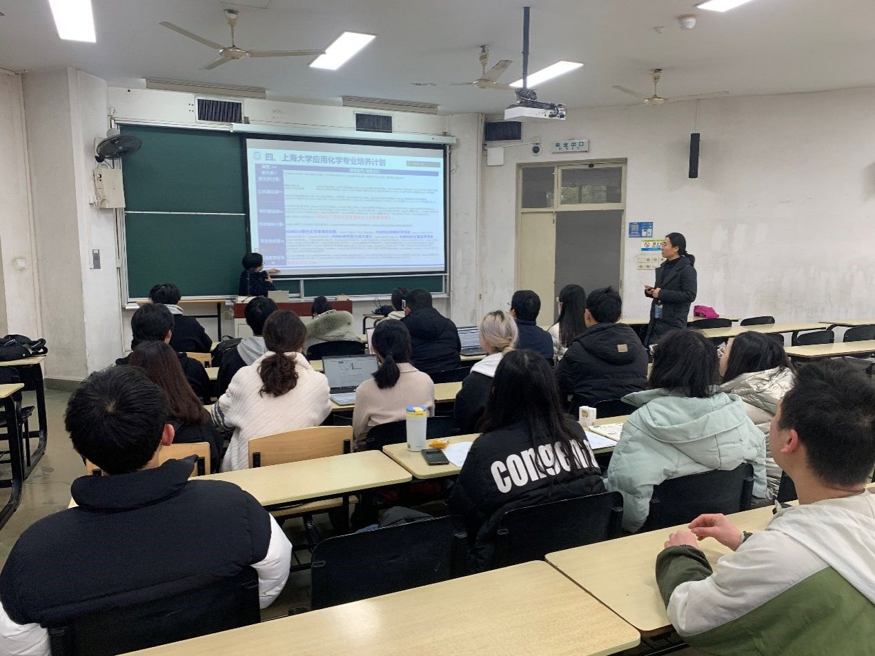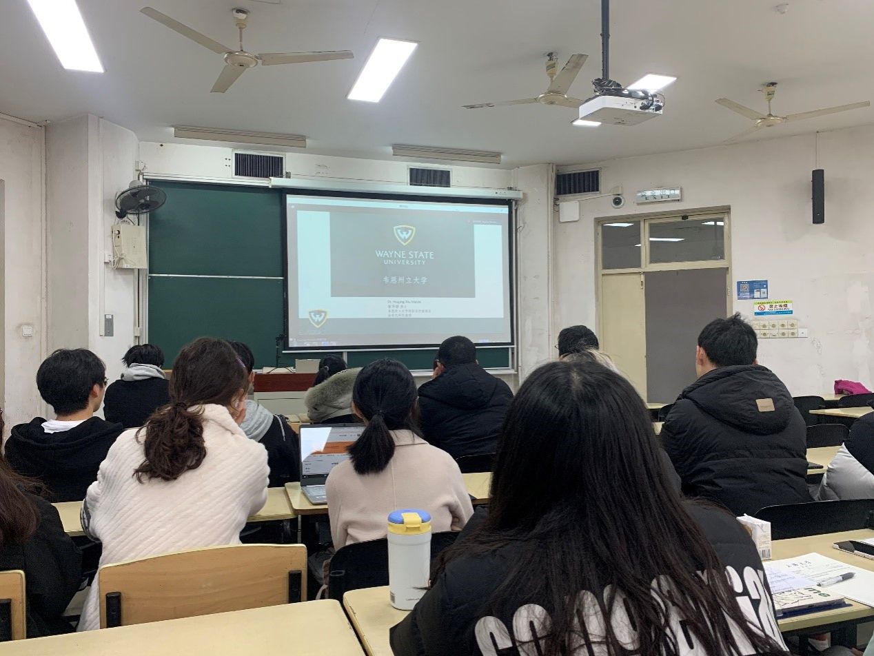 2023年2月17日上午,在williamhill官网宝山校区DJ108多媒体教室举行了williamhill体育在线登录-美国韦恩州立大学文williamhill体育在线登录应用化学“3+2”合作教育项目的宣讲会。来自美国韦恩州立大学国际合作副校长修华静,williamhill体育在线登录党委书记盛万成、党委副书记副院长姚颖冲、副院长郭聪(挂职)、化学学科党总支书记邢菲菲、化学系主任李健、副主任洪玲、孙丽宁、化学学科党总支副书记胡研及化学系线上线下共计50余位学生出席了本次宣讲会。