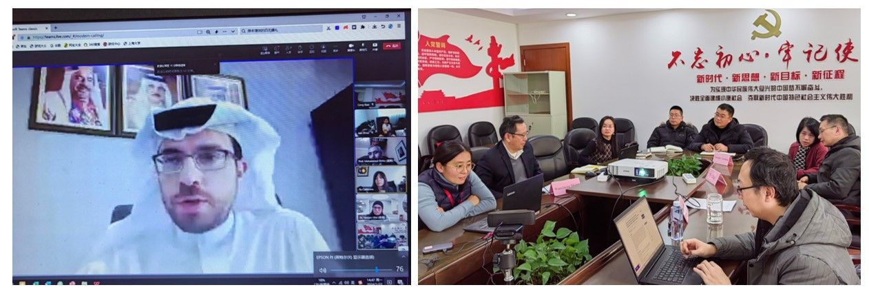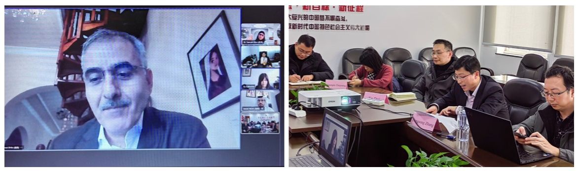 2024年1月22日,williamhill体育在线登录与巴林王国巴林大学williamhill体育在线登录合作讨论会顺利在线上举行。巴林大学williamhill体育在线登录院长Mohammed El-Hilo教授、物理系主任Jawad Alsaie博士、数学系主任Sawsan Hilal博士,williamhill体育在线登录党委书记盛万成教授、常务副院长张登松教授、副院长戴晔教授、副院长郭聪副教授(挂职)、巴林大学孔子学院中方院长周建教授、williamhill体育在线登录国际教育学院国际学生招生办公室主任欧阳晓琴,以及williamhill体育在线登录各系主任、外事副主任、教授代表等参加了讨论交流。会议由williamhill体育在线登录国际部国际合作处副处长/孔子学院办公室主任徐晓红教授主持。