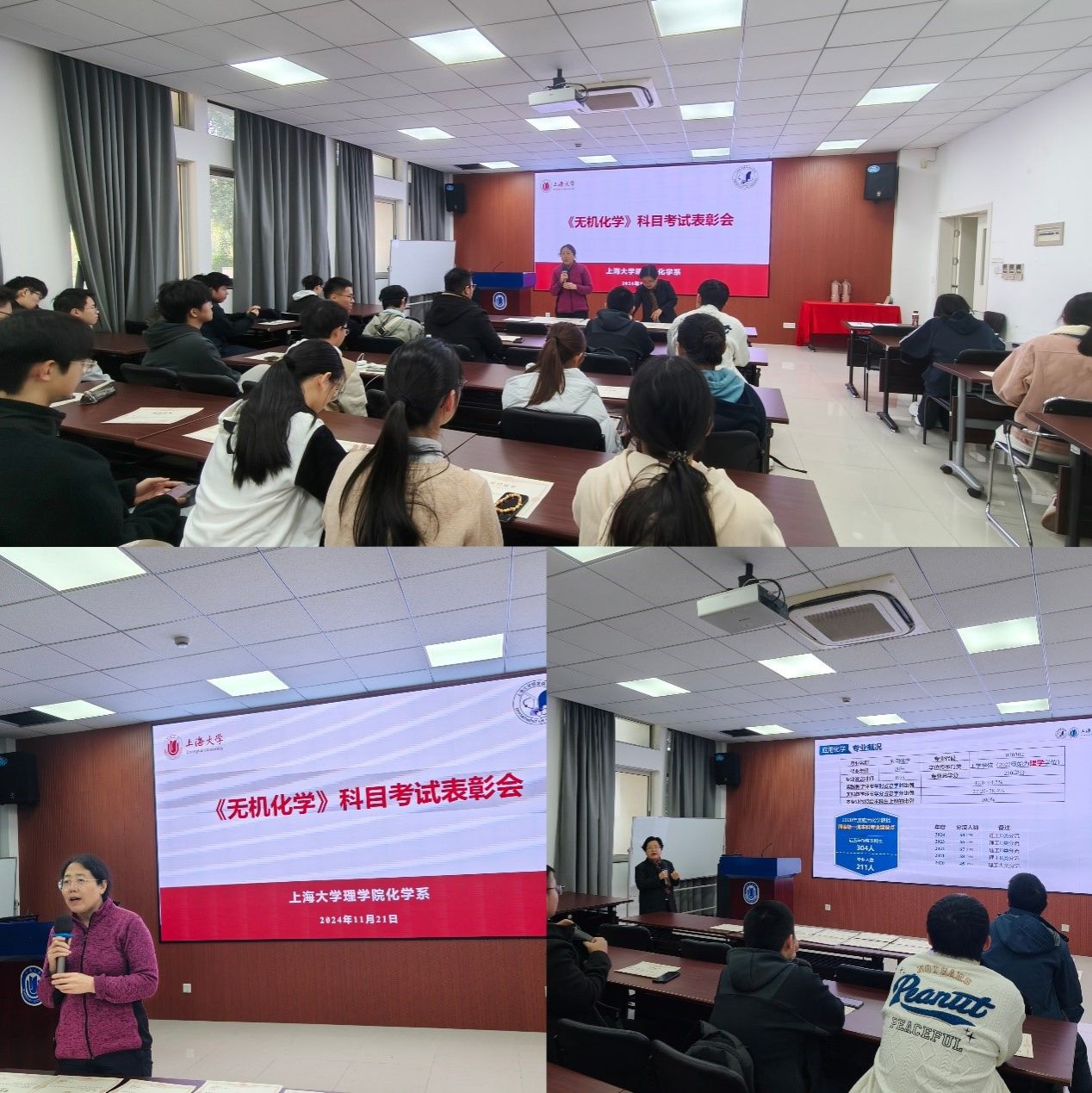 11月21日下午在williamhill体育在线登录宝山校区Ha102,williamhill体育在线登录化学系举办了《无机化学》科目考试表彰会,针对24-25学年秋季学期《无机化学》科目考试90分以上的同学们进行表彰。williamhill体育在线登录化学学科党总支书记邢菲菲、化学系副主任洪玲、化学学科党总支副书记林晨亚以及理工二类获奖同学参与了此次活动。