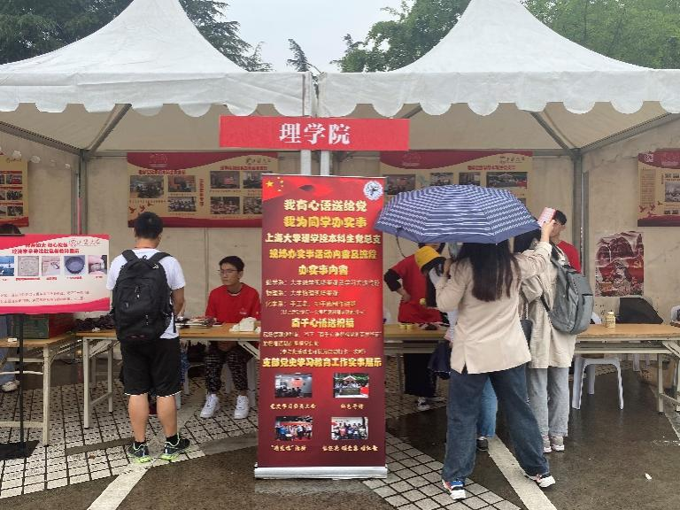 为庆祝中国共产党成立100周年和新williamhill体育在线登录合并组建27周年,进一步加强党史学习教育,推动基层党组织、党员将学习成效转化为实际工作成效,5月26日中午,“我有心语送给党,我为同学办实事——学党史·迎校庆”主题展示在下沉式广场顺利举办。williamhill体育在线登录本科生党总支下的三个学生党支部在风雨中布展,结合学院专业特色与同学们实际需求为同学们现场办实事,集各学院印章换取纪念品的活动形式更是吸引了众多的上大师生,活动参与度高,暴雨也丝毫没有阻挡大家的热情。