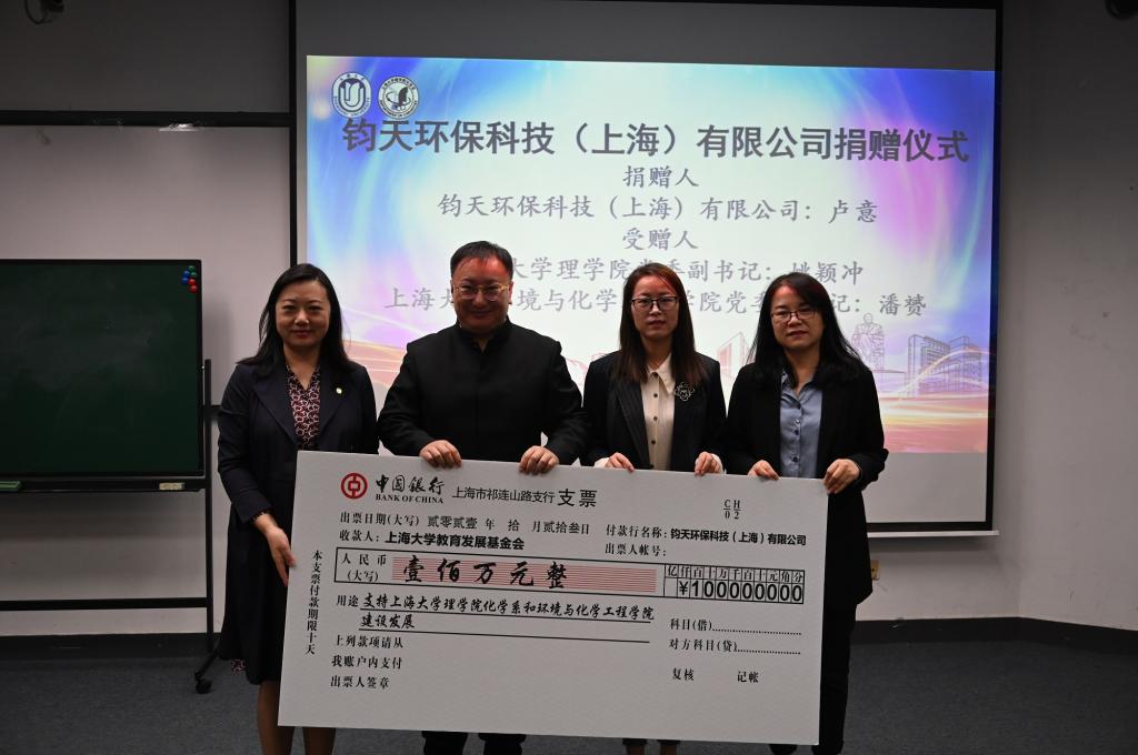 10月23日上午,williamhill体育在线登录钧天环保科技(上海)有限公司捐赠仪式——暨williamhill体育在线登录化学系校友奖学金颁奖典礼在J102隆重举行。williamhill体育在线登录对外联络处副处长杨静,均天环保科技(上海)有限公司董事长卢意、总经理戚雁俊,日之升科技有限公司董事长陈晓东,格桑创服董事长助理朱建忠,williamhill体育在线登录党委副书记姚颖冲、环境与化学工程学院党委副书记潘赟、钱伟长学院直属党总支副书记沈青松,williamhill体育在线登录化学学科党总支书记邢菲菲,化学系系主任曹卫国、副主任丁益民、洪玲及化学系、钱伟长学院的相关师生出席了捐赠仪式。仪式由来自化学系的本科生白郅昂和彭天馨主持。