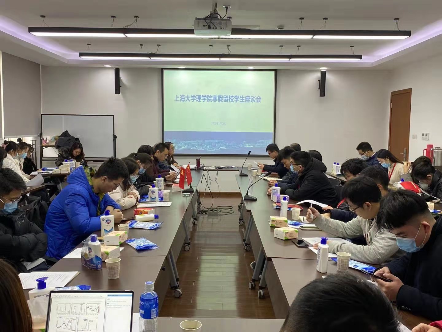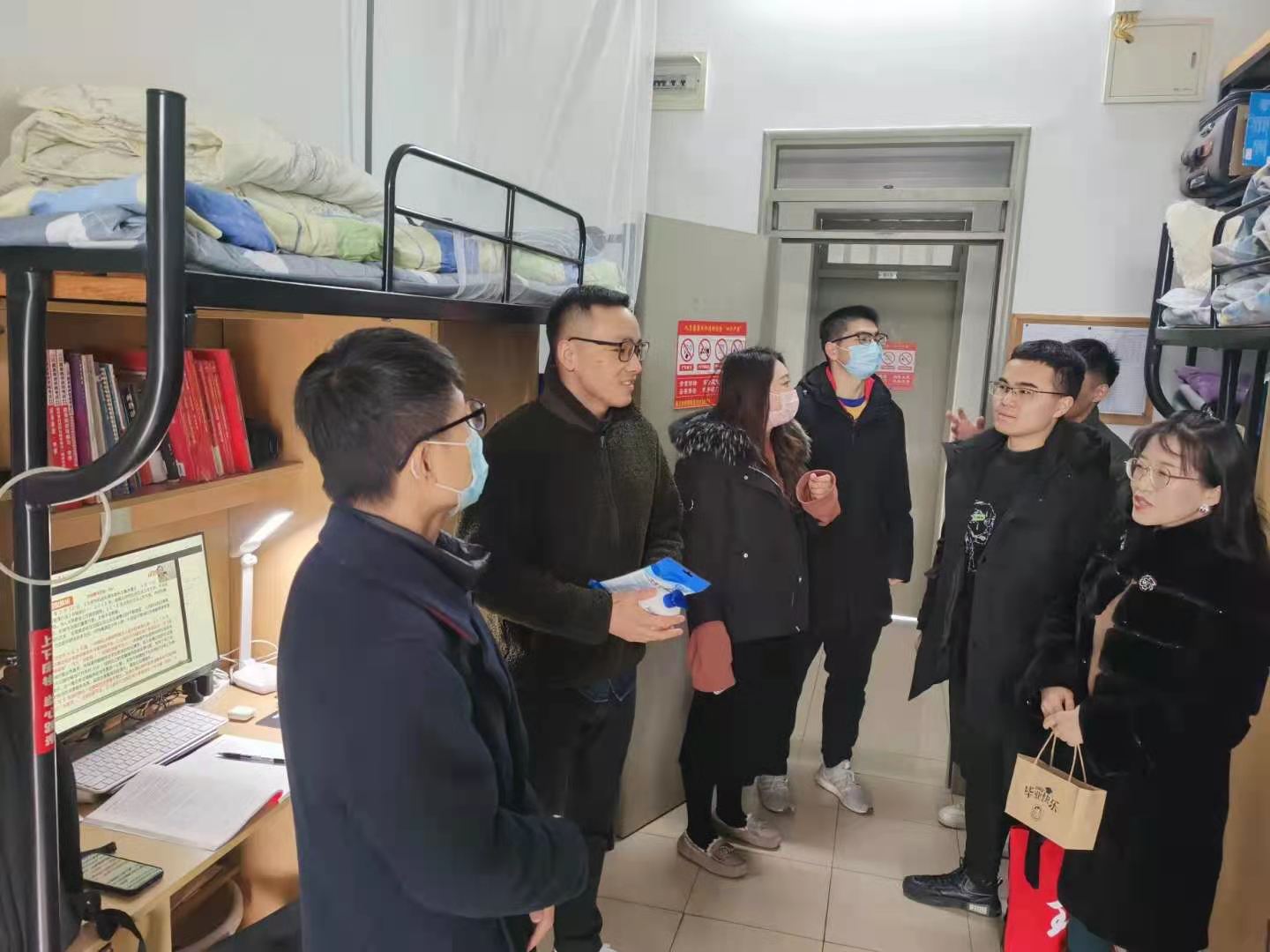 自由交流环节,同学们就在日常生活、科研学习上遇到的问题与在座领导老师进行了深切的交流。出席校部门领导强调了假期留校的注意事项,并表示寒假期间学校各部门会一如既往地履行职能,为留校同学保驾护航。随后,williamhill体育在线登录各系党总支书记为留校学生代表送上口罩等防疫物资。