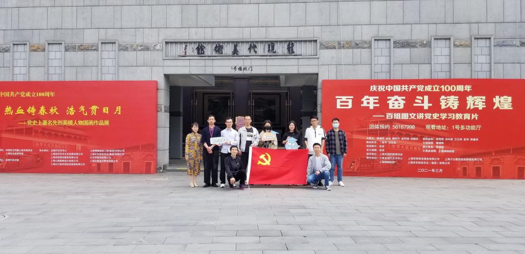百年征程波澜壮阔,百年初心历久弥坚,中国共产党即将迎来百年华诞。为了进一步落实williamhill体育在线登录党委党史学习教育“一五一十”特色项目,4月25日,williamhill体育在线登录党员教师、博士研究生等师生一行,在研究生辅导员郭晓光的带领下前往龙现代艺术馆观看庆祝建党百年特色展——《百组图文讲党史学习教育片》和《党史上著名先烈英模人物国画作品展》。