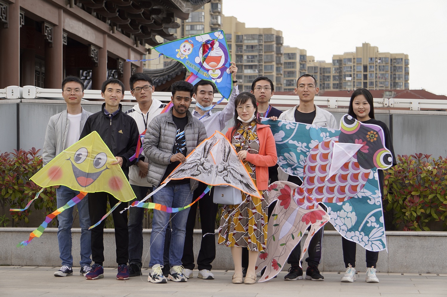 从展馆出来后,同学们参观展馆所在的园区,园区有造型奇特的松树,有绿波碧池,有青草鲜花,有亭台楼阁,有飞檐翘角,怡人的风景让大家怡然自得,纷纷感慨上海在新型城市的建设和发展中能够兼顾现代化与传统艺术的结合和平衡,感受到“人民城市人民建,人民城市为人民”这一理念在细微中的落实。随后,同学们寓意风筝“放飞理想”。