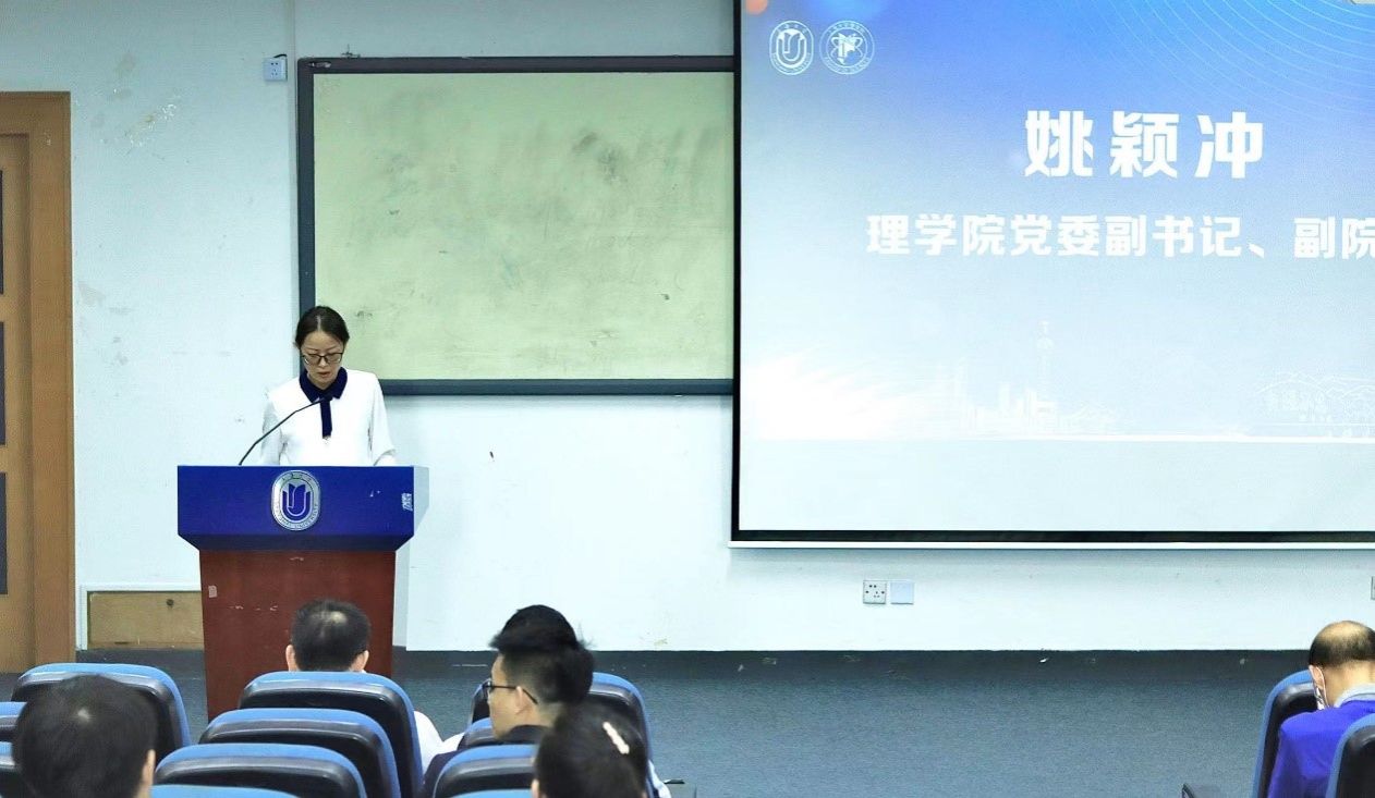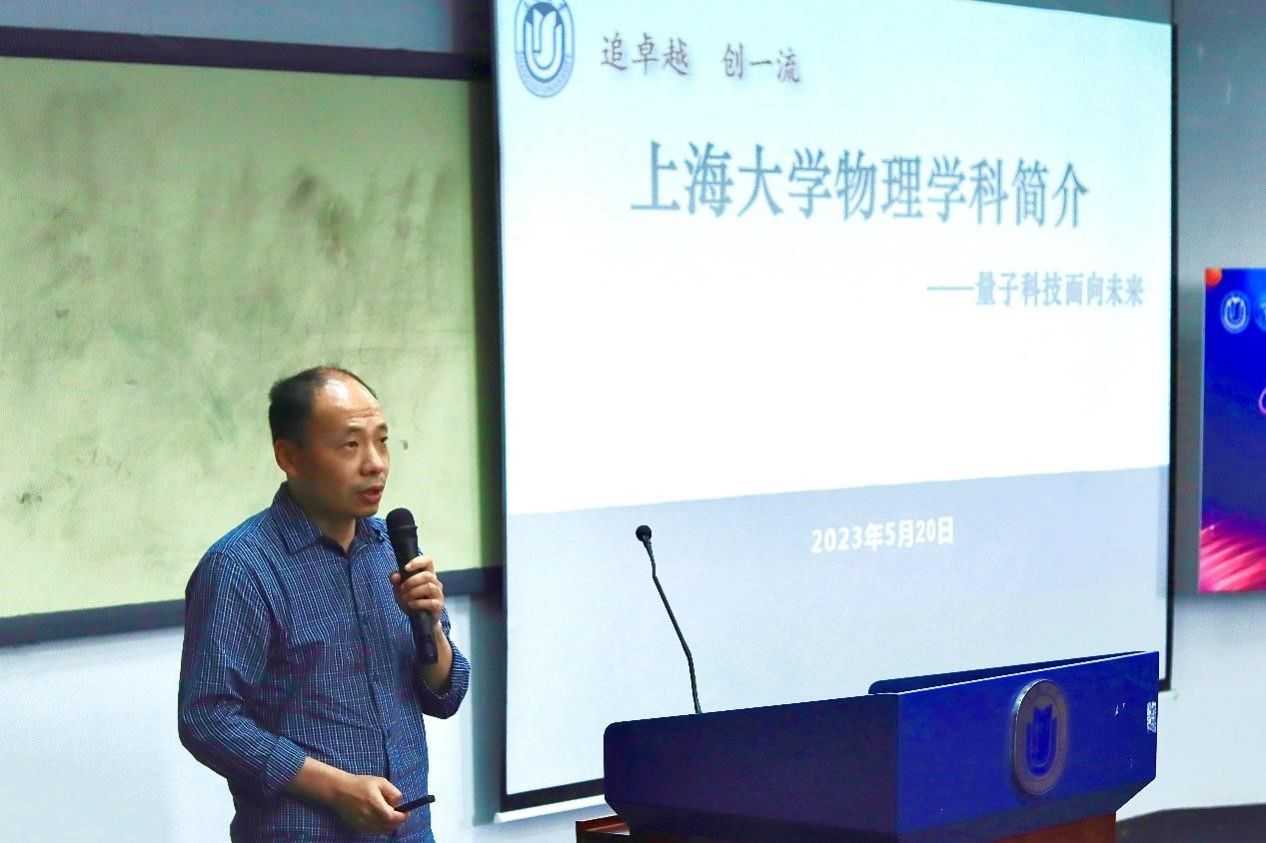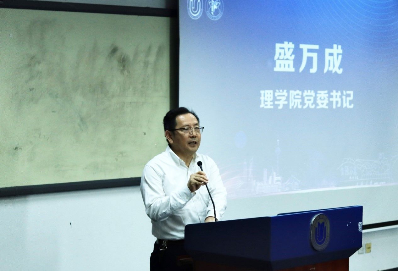 物理系党总支书记颜明老师发言,他表示物理系蒸蒸日上,聚焦学科三大方向,承担国家自然科学基金、国家重点研发计划等各类课题,与华为、腾讯、深兰等企业开展合作研究。始终与外界保持紧密交流,带领学生不断走出校门,链接社会。