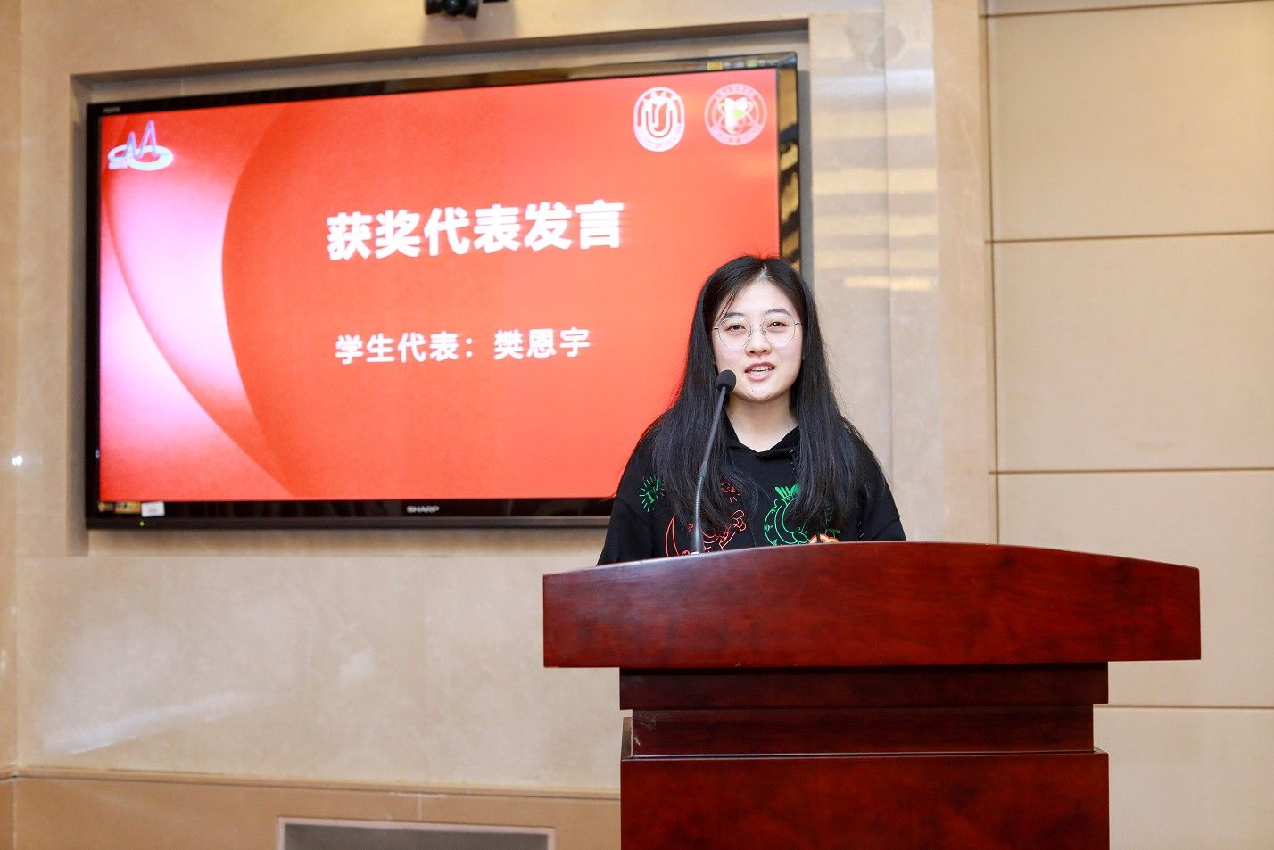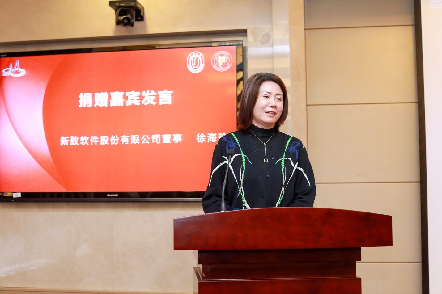最后,徐海珍女士发表了讲话,向阳阳教育基金的全体获奖师生表示衷心的祝贺,表达了她与郭玮先生对母校和数学系的深厚情谊。步入新时代,机遇与挑战并存,希望数学系青年把智慧、勇气和力量转化为责任、坚守和担当,把个人奋斗融入时代大潮,把自强不息的精神注入血脉,在服务社会、奉献国家的奋斗历程中实现自己的人生价值。