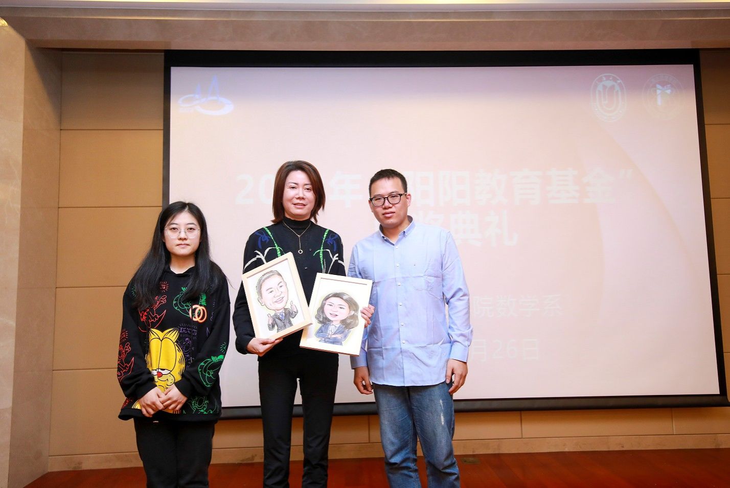 11月26日上午,williamhill体育在线登录数学系2022年“阳阳教育基金”颁奖典礼在乐乎楼学海厅顺利举行。数学系87级校友、新致软件股份有限公司董事徐海珍女士、williamhill体育在线登录对外联络处处长、教育发展基金会秘书长陈然、williamhill体育在线登录党委书记盛万成、党委副书记、纪委书记刘见礼、党委副书记、副院长姚颖冲、副院长徐甲强、副院长戴晔、副院长余长君、副院长袁帅、williamhill体育在线登录巡察工作办公室原巡察员陈志宏、数学系主任张红莲、数学系班子成员及获奖师生出席了颁奖典礼。典礼由数学系党总支书记赵发友主持。