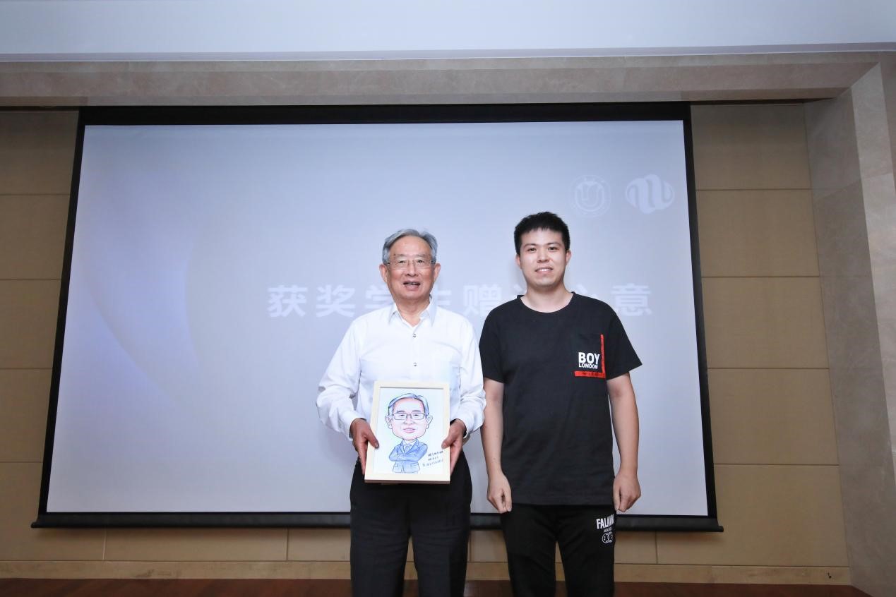 随后,吴祺伟同学代表全体获奖师生为方明伦校长送上师生们精心准备的纪念品——手绘的肖像漫画。