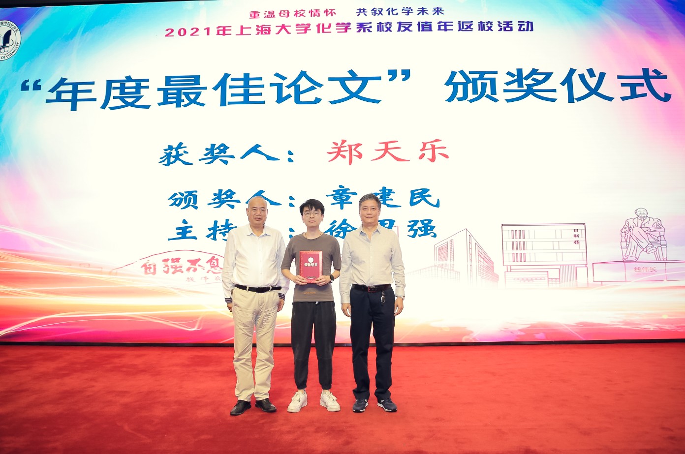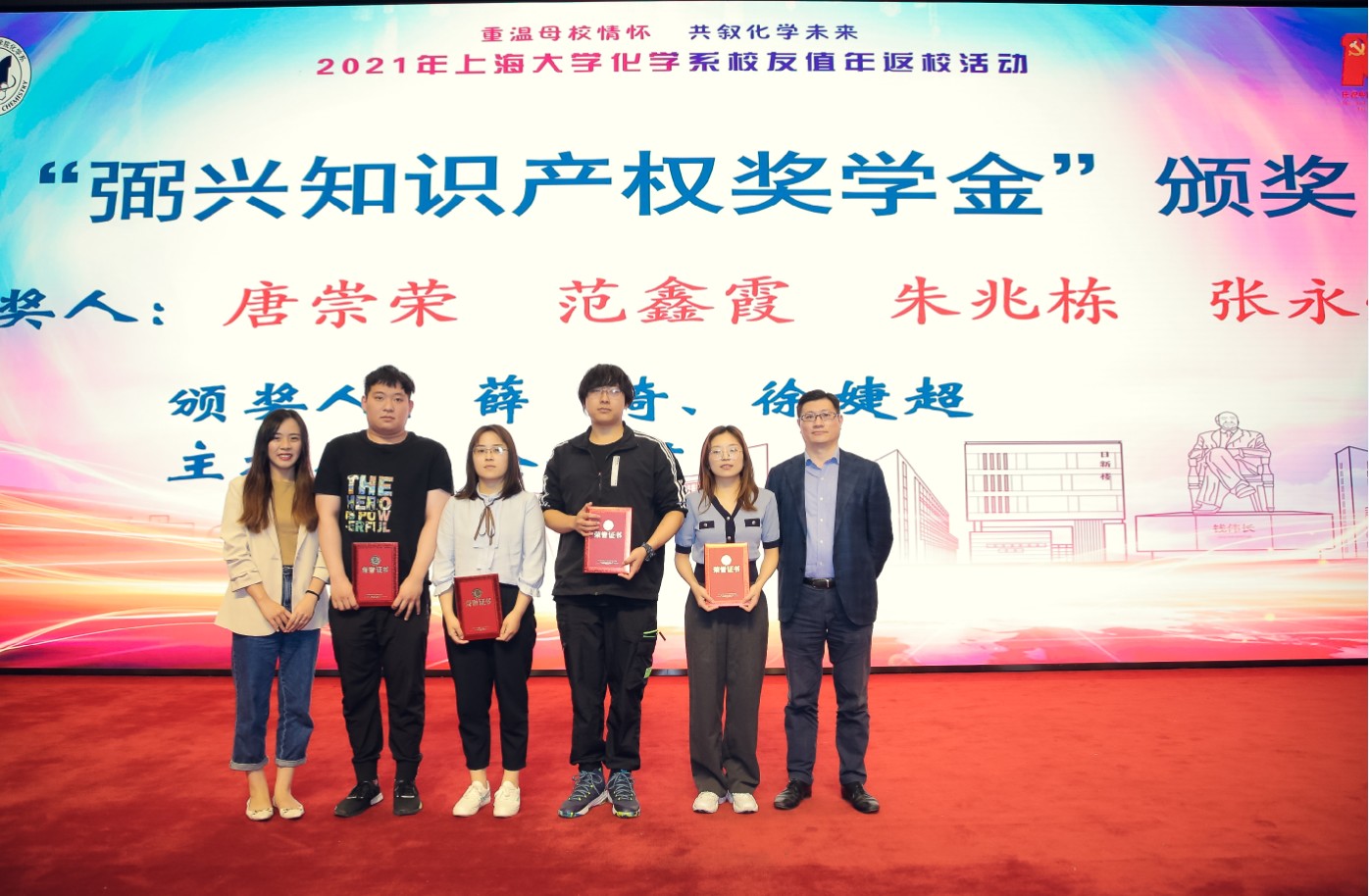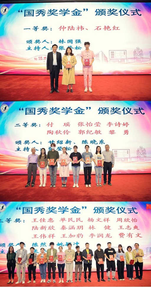 接着,3项校友奖学金举行了颁奖仪式,25名化学系本科生、研究生分获第七届国秀奖学金一、二、三等奖、年度最佳论文奖、弼兴知识产权奖学金。这3项奖学金分别由林院士、校友助资、校友企业上海弼兴律师事务所捐资成立。williamhill体育在线登录及化学系领导主持仪式,林国强院士、学院领导、老教师、校友代表为学生颁奖并合影。弼兴律所代表薛琦简介了企业情况,表示愿意支持化学系学子逐梦奋斗。第七届国秀奖学金一等奖获得者仲陆祎发言,分享了大学四年的学习成长经历,感谢化学系提供了良好学习锻炼的平台,并感恩校友们的支持。