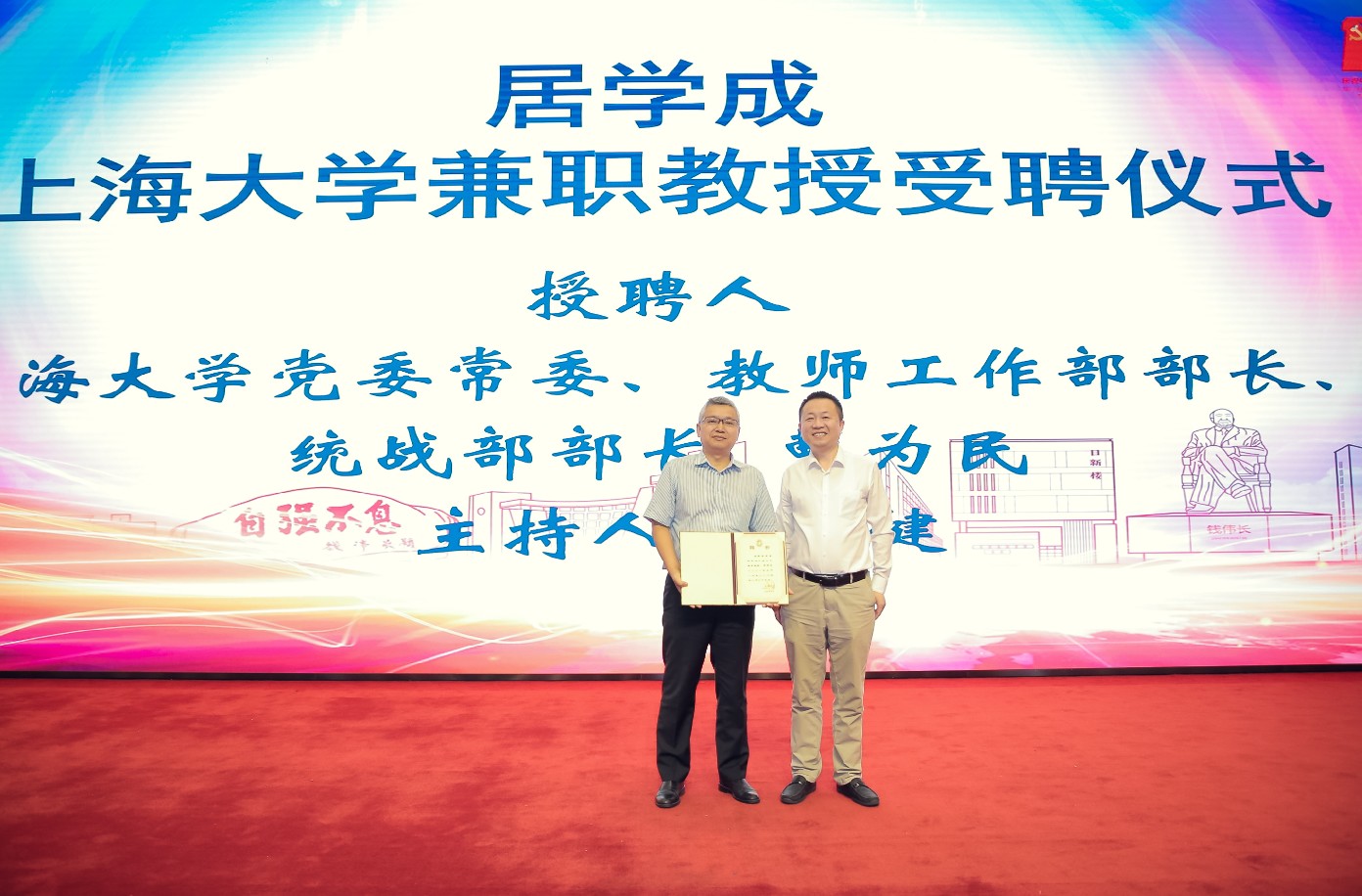 曹为民部长为校友居学成授予williamhill体育在线登录兼职教授聘书,化学系副主任李健教授主持仪式。87级有机化学专业居学成校友在讲话中感恩母校师长的悉心培养,在老科大化学系本硕学习及工作了9年,对母校情深意切,他号召年轻一辈向林院士等杰出校友学习,关心母校发展,积极投身国家科技、化学相关产业建设中,并期待母校跨越式发展。